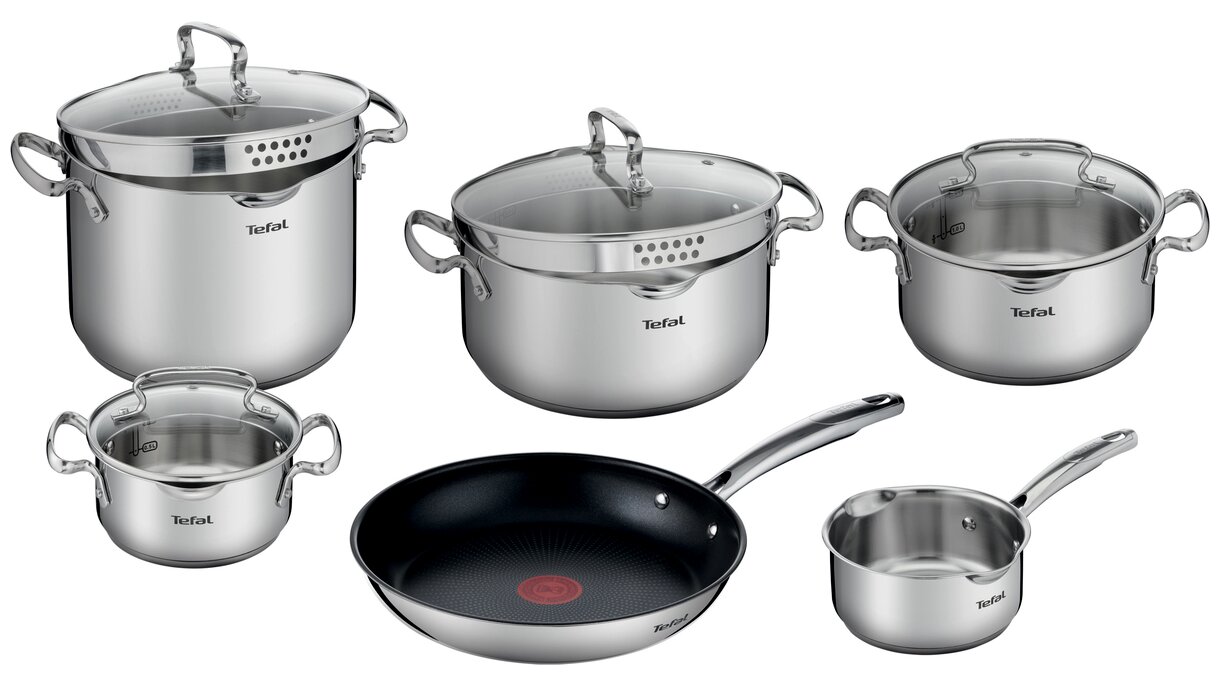 Exkluzív, Tefal Thermo-Signal™ technológia és Titanium X2 tapadásmentes felület (a serpenyőnél), amelyeknek köszönhetően kiváló ételek készíthetők és növekszik az edények élettartama.