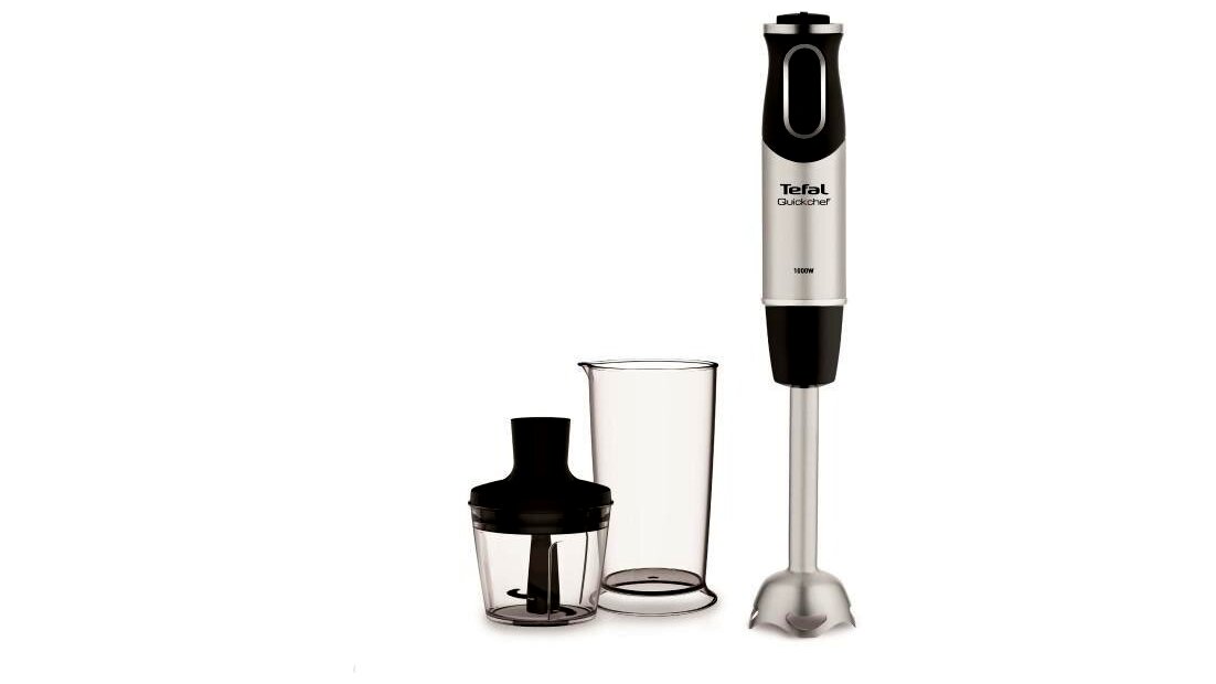 A Quickchef botmixerrel a Tefaltól minimális erőfeszítéssel élvezheti az optimális teljesítményt. A nagy teljesítményű, 1000 W motornak köszönhetően pillanatok alatt elkészíti a legkülönbözőbb ételeket, a keverőgép kikapcsolása nélkül egy intuitív és egyszerűen használható választógombbal állítható 20 sebességgel pedig teljesen irányítása alatt tartja az elkészítést. A kifröccsenés elleni védelem és a jól tapadó fogantyú pedig kényelmes használatot nyújt, az egyes alkatrészek pedig könnyedén mosogatógépben moshatók. Mindezt egy 800 ml űrtartalmú kimérő edény és egy bárd egészíti ki 500 ml űrtartalmú edénnyel a legkülönbözőbb hozzávalók egyszerű szeleteléséhez.