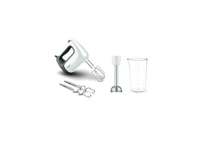 Elektromos mixer 500 W-os, nagy teljesítményű motorral. A könnyű alapanyagokat a két rozsdamentes acél habverő lapát segítségével könnyedén mixelhetjük vagy tökéletes habbá verhetjük, míg a két rozsdamentes acél dagasztó spirált a sűrűbb tészták elkészítésre használhatjuk. A készülék ezen felül tartós, rozsdamentes toldóelemmel felszerelt, amelynek segítségével a készülék botmixerként is használható. Fedezze fel a kézi turmixolást, amely az 5 sebességfokozatnak és a Turbó funkciónak köszönhetően még sosem volt könnyebb.