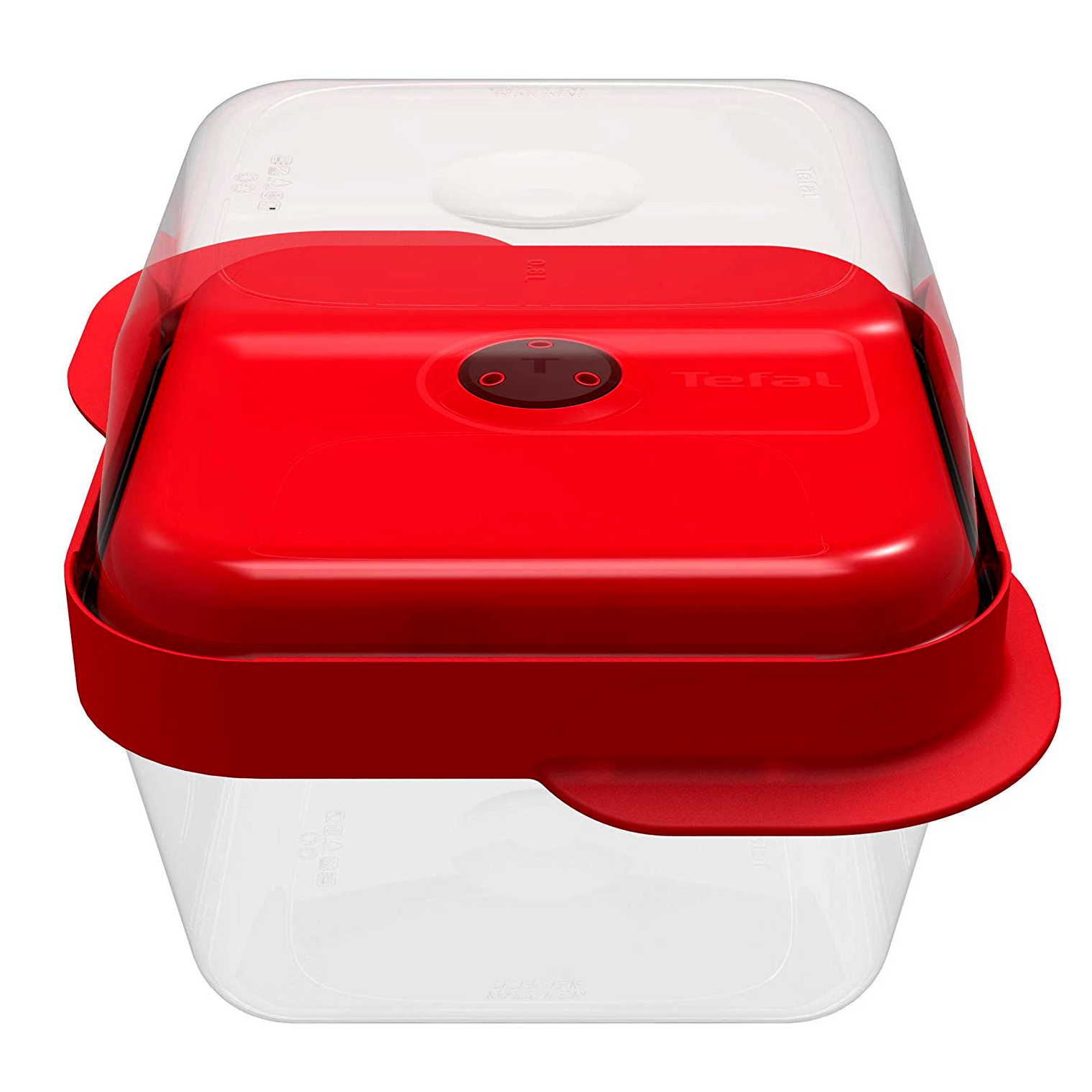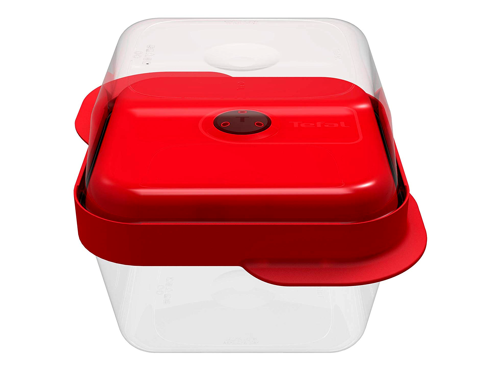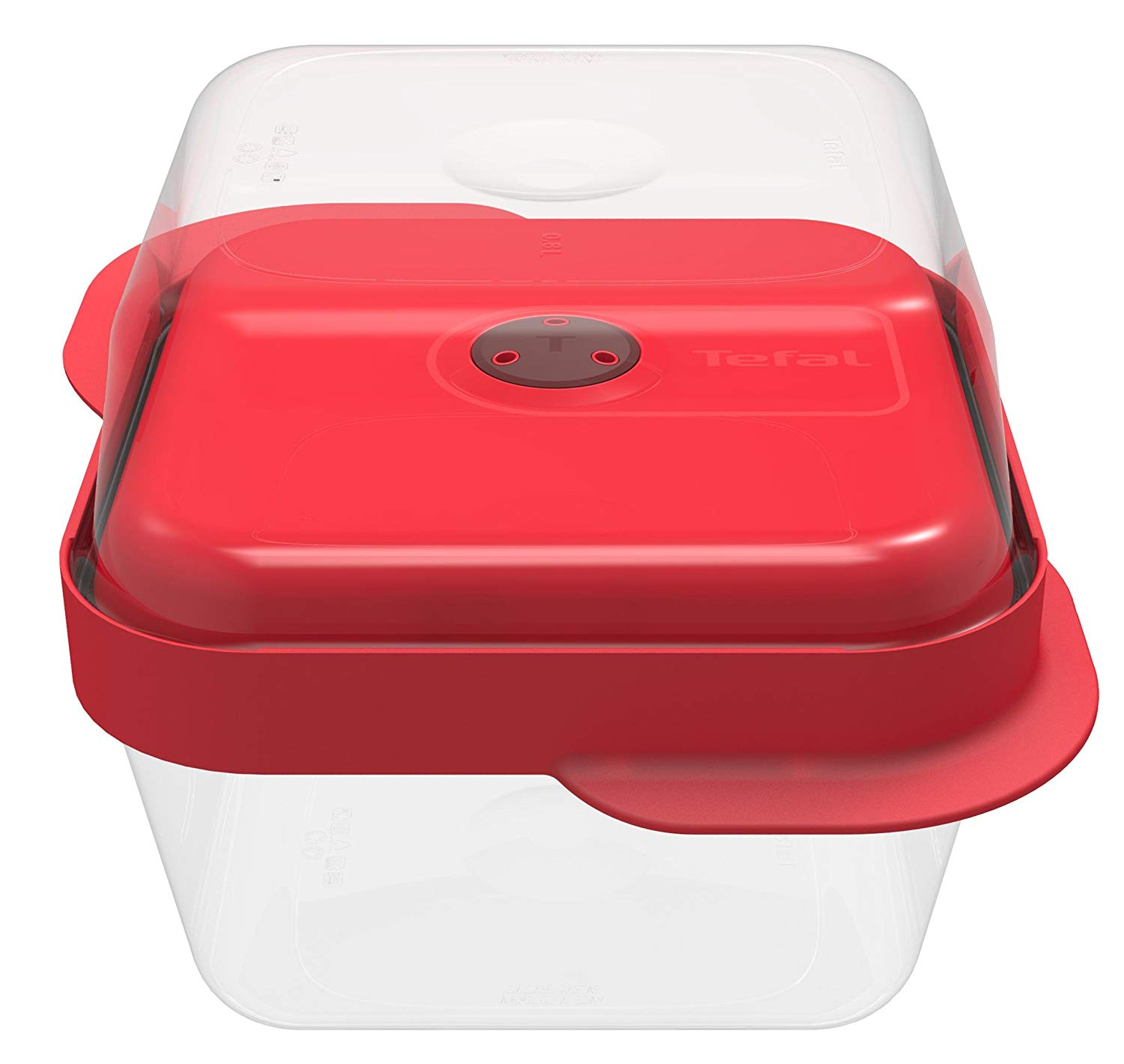 A Tefal K2198314 MasterSeal műanyag ételtároló edény szett kettő, különböző méretű, négyzet formájú tárolóedényt tartalmaz (0,8L és 1L). Ezek az innovatív edények tökéletesek arra, hogy az ételeket hosszú ideig frissen tartsák és könnyedén szállíthatók legyenek, köszönhetően a Tefal szabadalmaztatott szellőzőnyílású fedélrendszerének.