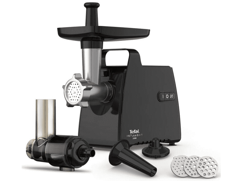 A Tefal HV7 Plus 6 az 1-ben egy kompakt és nagy teljesítményű húsdaráló, amellyel húsgombócokat, kolbászokat, hamburgereket és még sok mást készíthet! A húsdaráló nagy teljesítményű, 2000 W-os motorral van felszerelve, amely akár 2,8 kg/perc darálást is lehetővé tesz. Kompromisszumok nélküli teljesítményt biztosít nap mint nap és 3 rozsdamentes acél ráccsal, valamint kolbász, kebbe és püré tartozékokkal felszerelt különbözői finomságok elkészítéséhez a hamburgerektől és darált húsoktól kezdve egészen az egészséges gyümölcslevekig. A húsdarálás még sosem volt ilyen egyszerű, mint most, a Tefal segítségével!