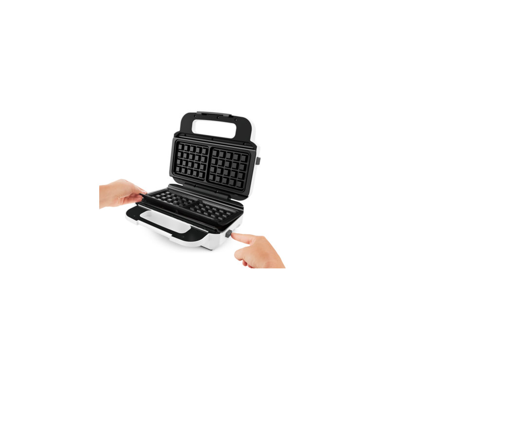 A készülékhez két levehető sütőlap tartozik: az egyik szendvicsek készítésére, míg a másik nagyméretű gofrik sütésére használható - amelynél elegendő hely marad a töltelék elhelyezésére.