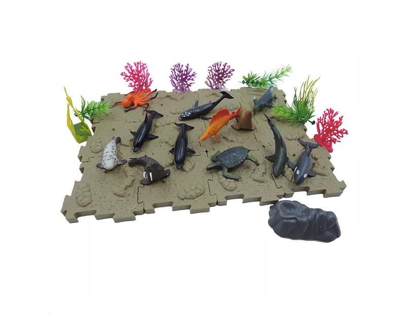 Tartalom: 12 db tengerfenék tábla fosszíliákkal, 4 db korall (2 rózsaszín, 2 lila), 6 db aljnövényzet (2 féle), 1 db szikla, 12 db különböző tengeri állat.