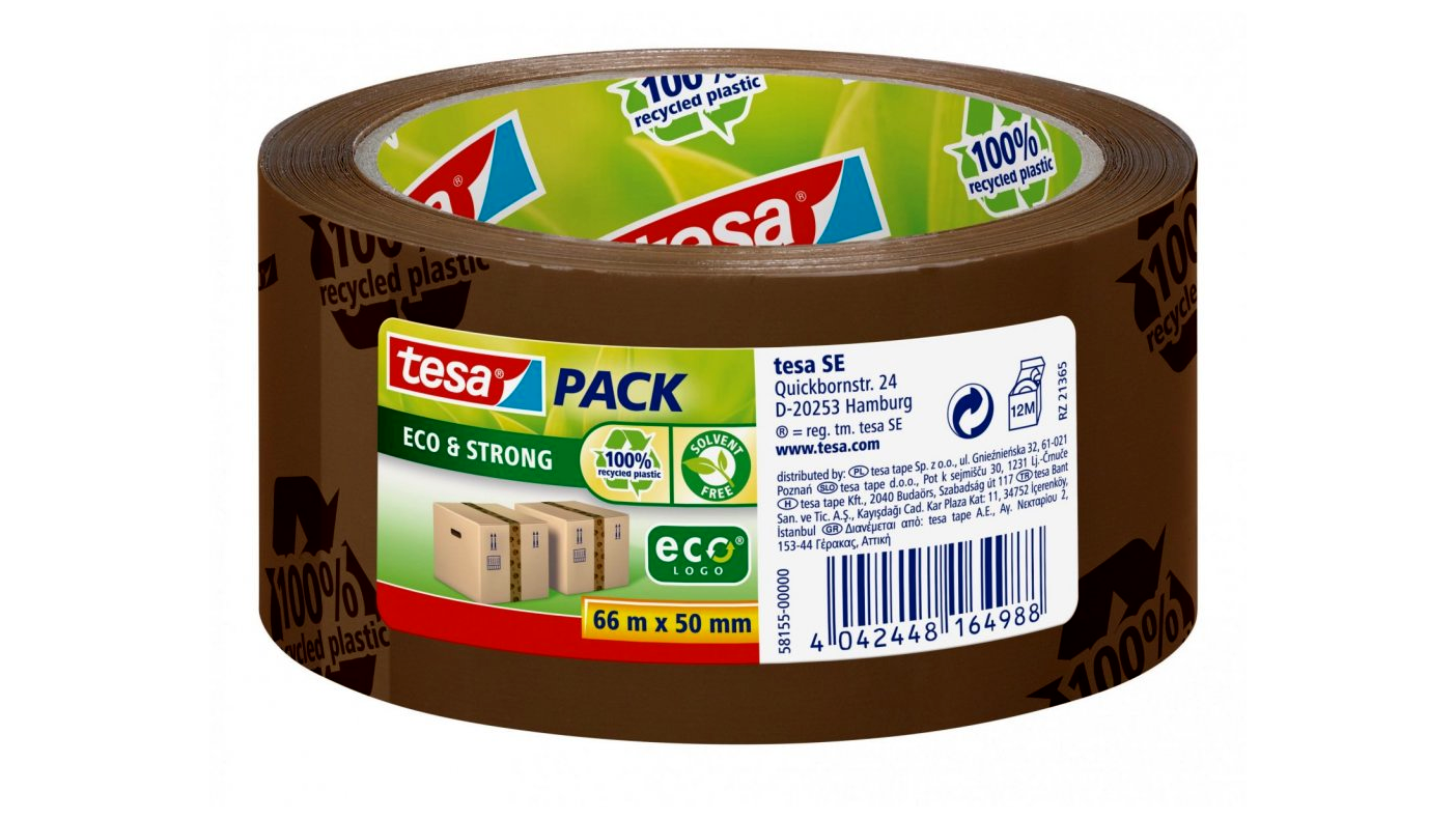 A modern csomagolószalagok többsége két fő részből áll: egy hordozó fóliából (például PP vagy PVC) és egy speciális ragasztórétegből. Az új generációs, környezetbarát megoldásoknál a fólia már egyre gyakrabban készül újrahasznosított műanyagból, ahogy ennél a terméknél is, így csökkenthető az ökológiai lábnyom anélkül, hogy kompromisszumot kellene kötni a teherbírás vagy a tapadás terén.