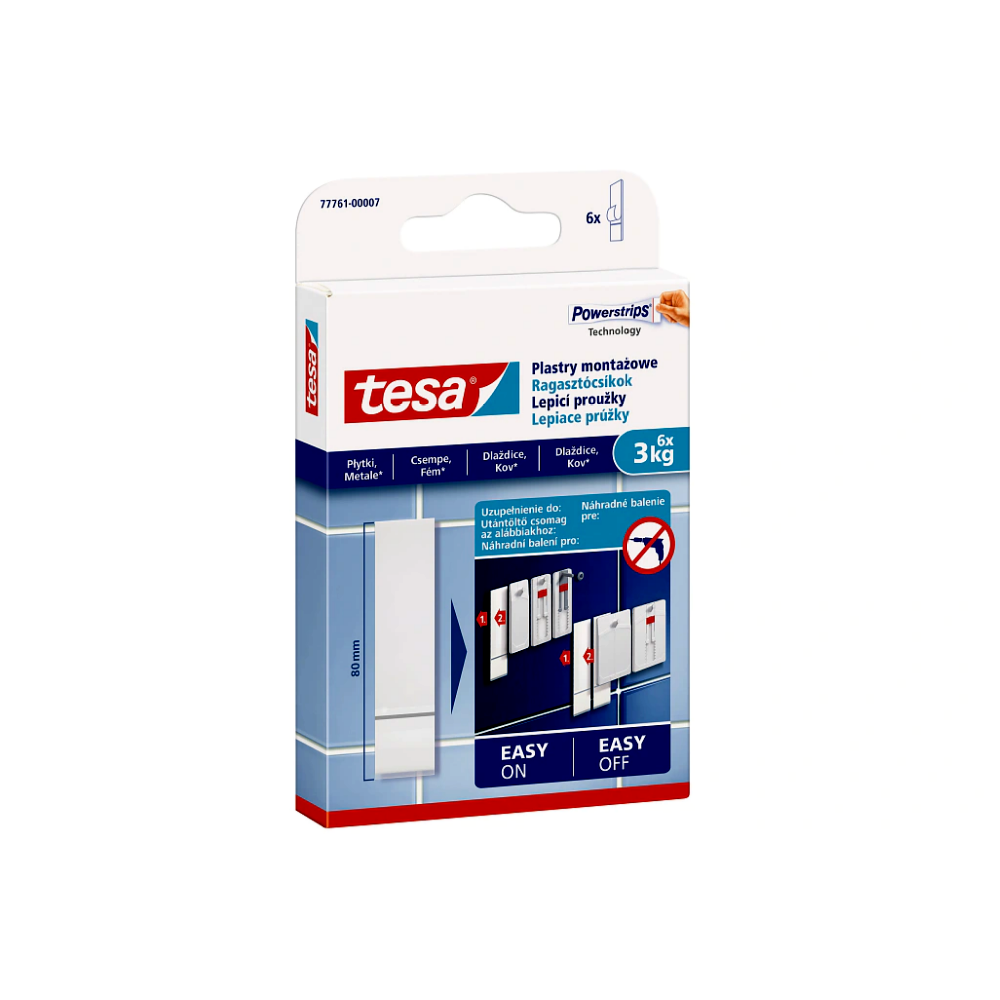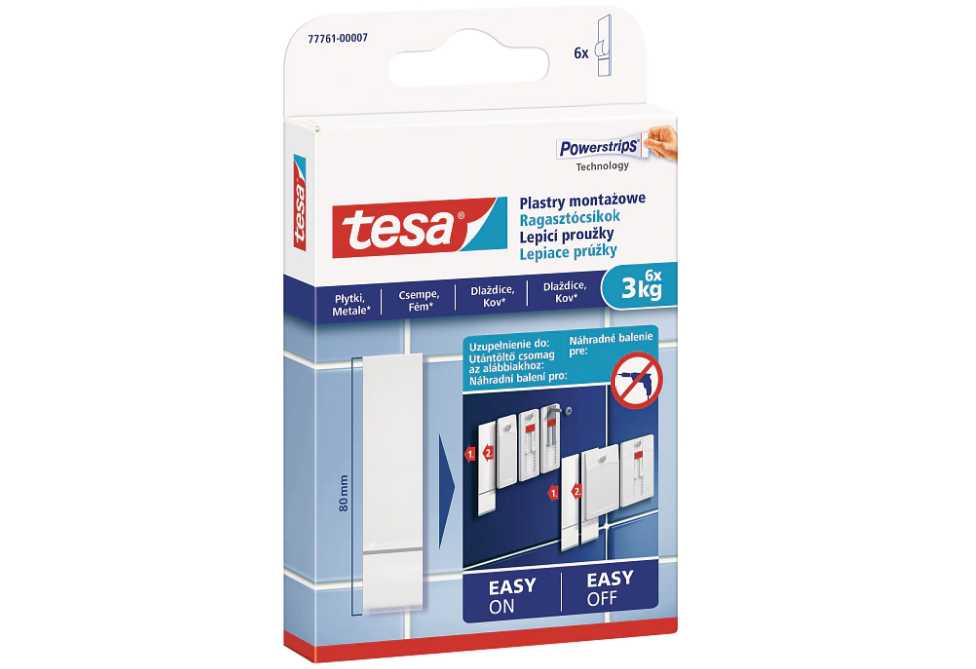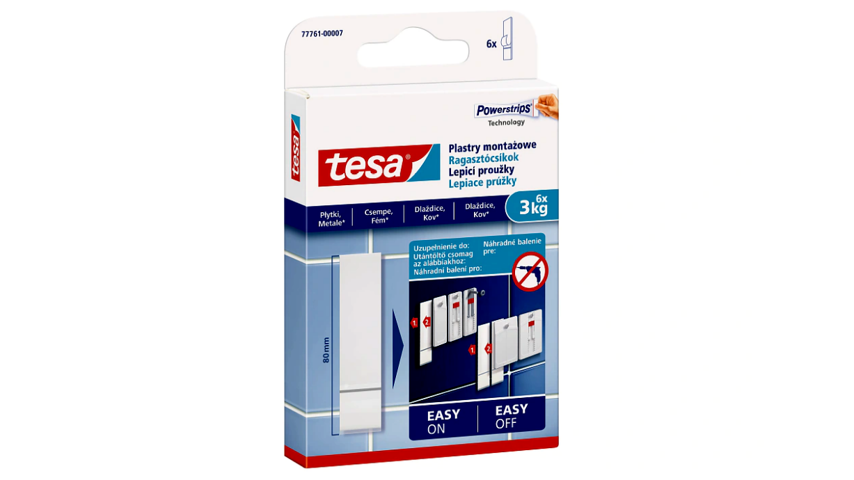 • Anyagkímélő megoldás: a csempe, üveg és fém felületek kifejezetten érzékenyek a fúráskor keletkező sérülésekre, repedésekre – a ragasztócsíkok használatával ez teljes mértékben elkerülhető.