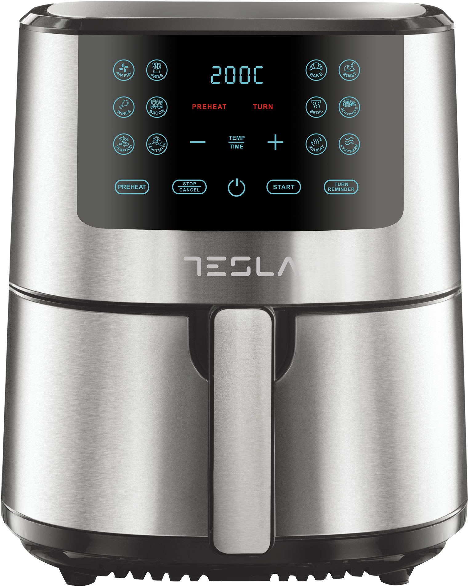 A Tesla AF501BX 360°-os forró levegő keringtetést alkalmaz, amely biztosítja az egyenletes és gyors sütést, így az ételek kívül ropogósak, belül pedig puhák maradnak. Emellett az olajmentes sütés egészségesebb alternatívát nyújt a hagyományos sütési módszerekhez képest.