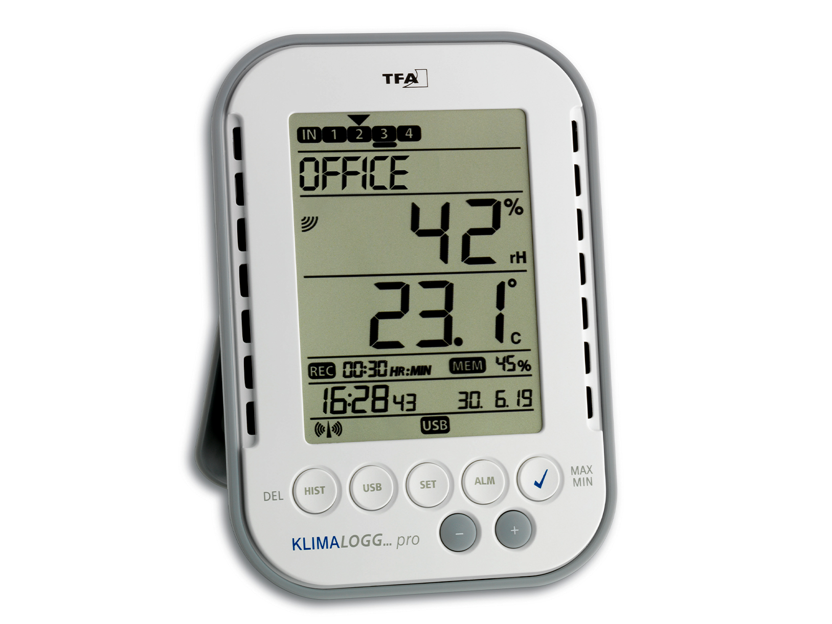 - Hőmérséklet (pontosság ± 1°C) és páratartalom (pontosság ±3% 35...75%-tól) figyelésére.