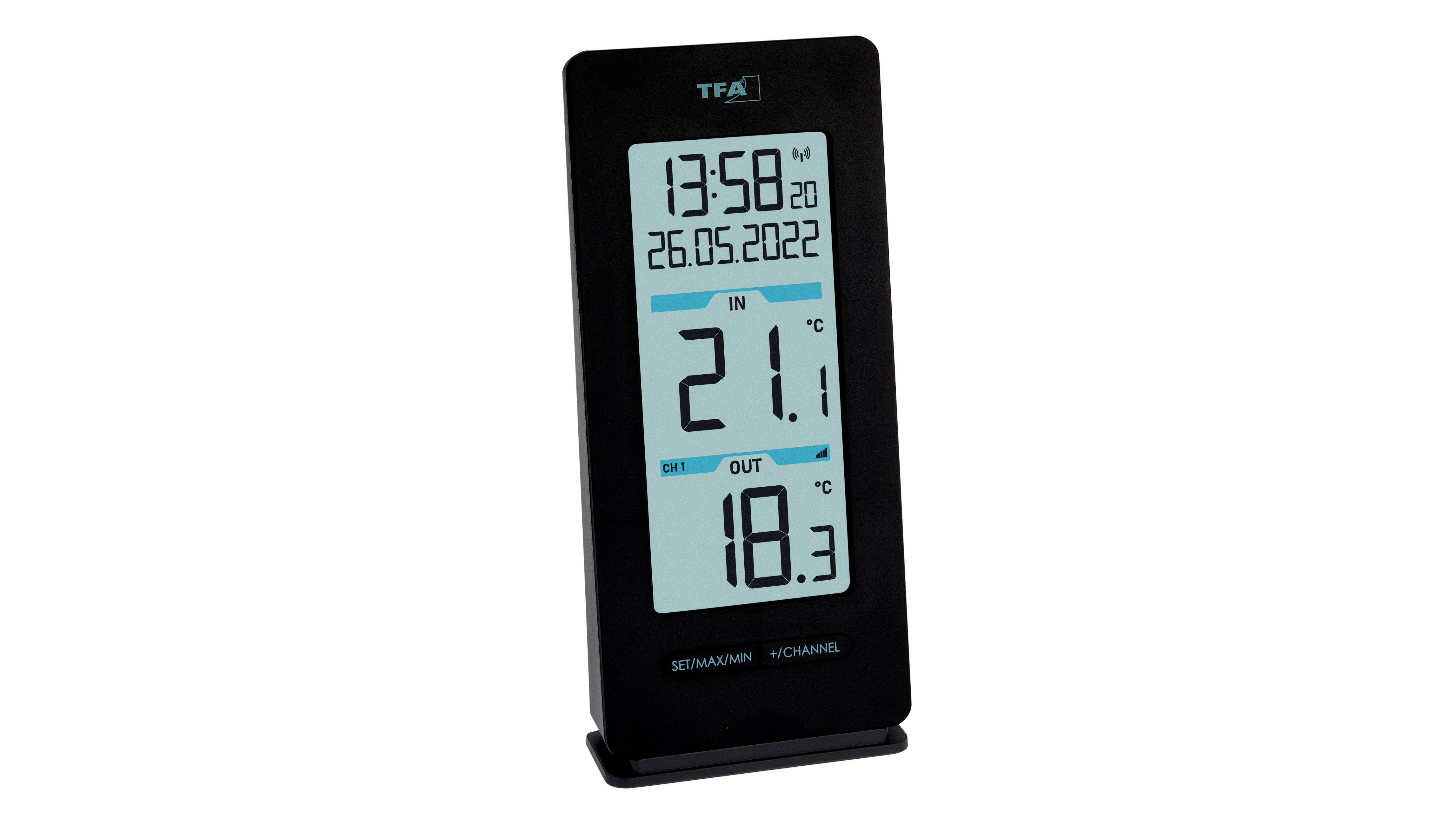 Ennek a kültéri érzékelővel ellátott vezeték nélküli hőmérőnek garantáltan állandó helye lesz otthonában. Lineáris kialakításának köszönhetően tökéletesen alkalmazkodik minden környezethez. Az áttekinthető kijelző megkönnyíti az olvasást. Így egy pillantással minden adatot megkaphat. Tájékoztatást ad az időről, ahogy elhalad mellette a rádióórának köszönhetően. Megmutatja, milyen meleg vagy hideg van kint és bent. Ezenkívül a kívánt időközönként elmenti a maximális és minimális értékeket. Opcionálisan az értékek automatikusan visszaállnak minden nap éjfélkor, vagy manuálisan. Szeretné figyelemmel kísérni a többi helyiség hőmérsékletét? Az általunk kifejlesztett és tervezett vezeték nélküli hőmérő akár 3 távadóval is bővíthető. Így könnyen nyomon követheti a dolgokat, és optimalizálhatja az energiafogyasztást lakóterében.