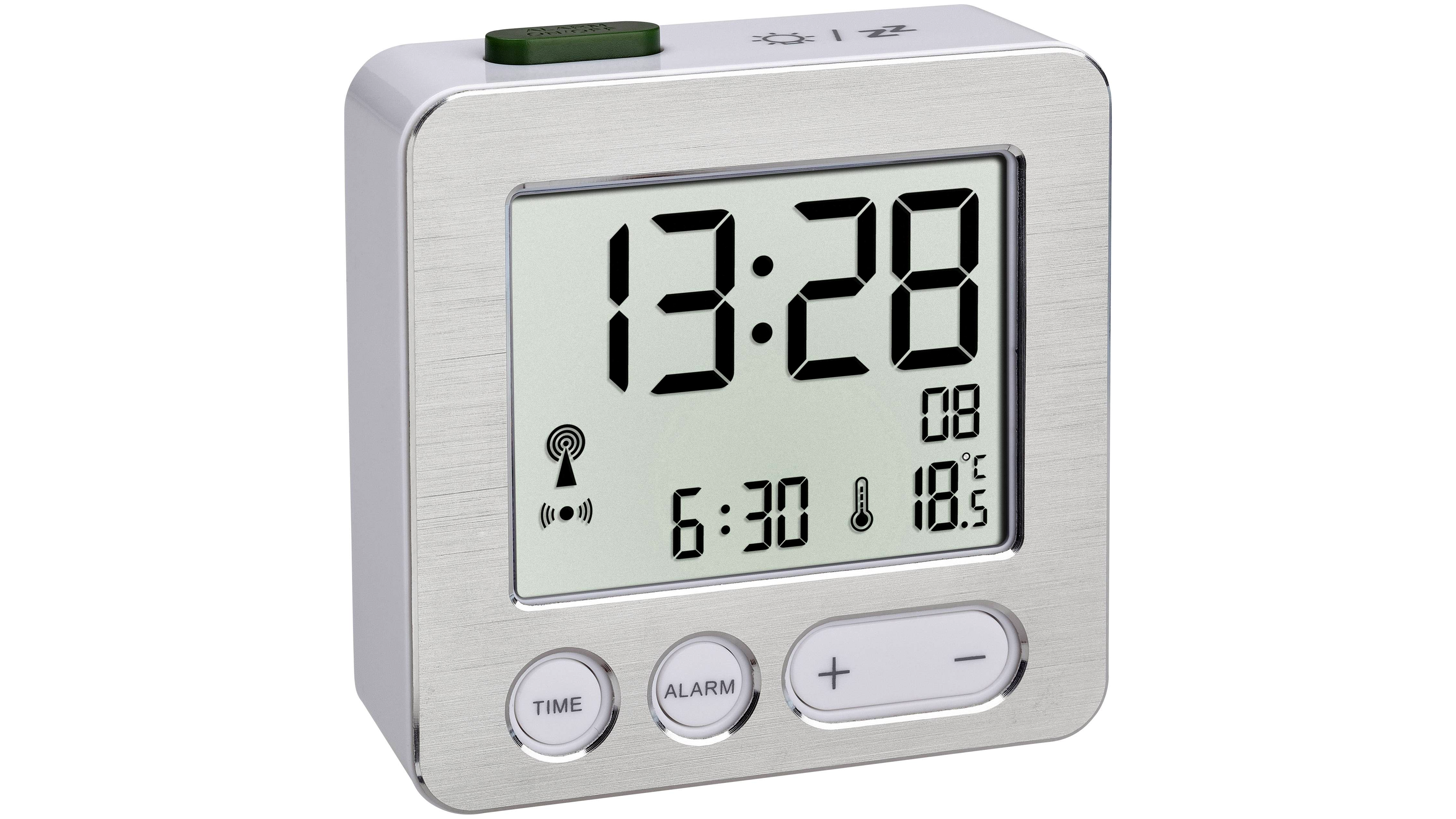 - Az ébresztőóra a DCF77 jellel pontosan másodpercre van beállítva, és automatikusan átvált nyáriról téli időszámításra.