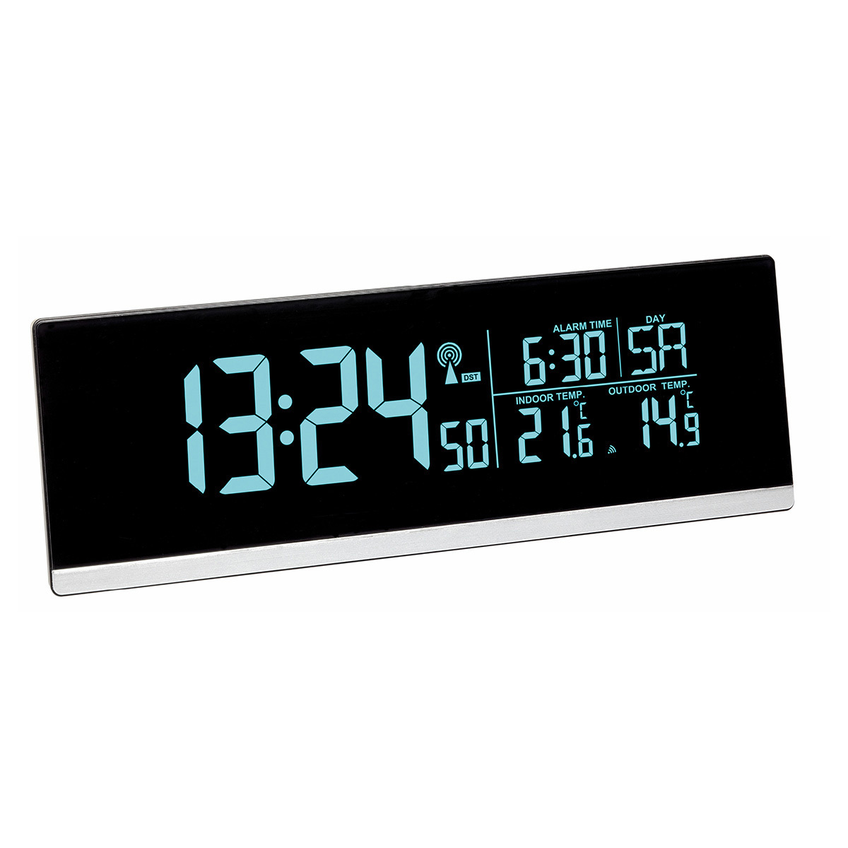 Ezenkívül a rádióval vezérelt ébresztőóra jelzi az aktuális dátumot és a hét napját, itt 7 különböző nyelv közül választhat.