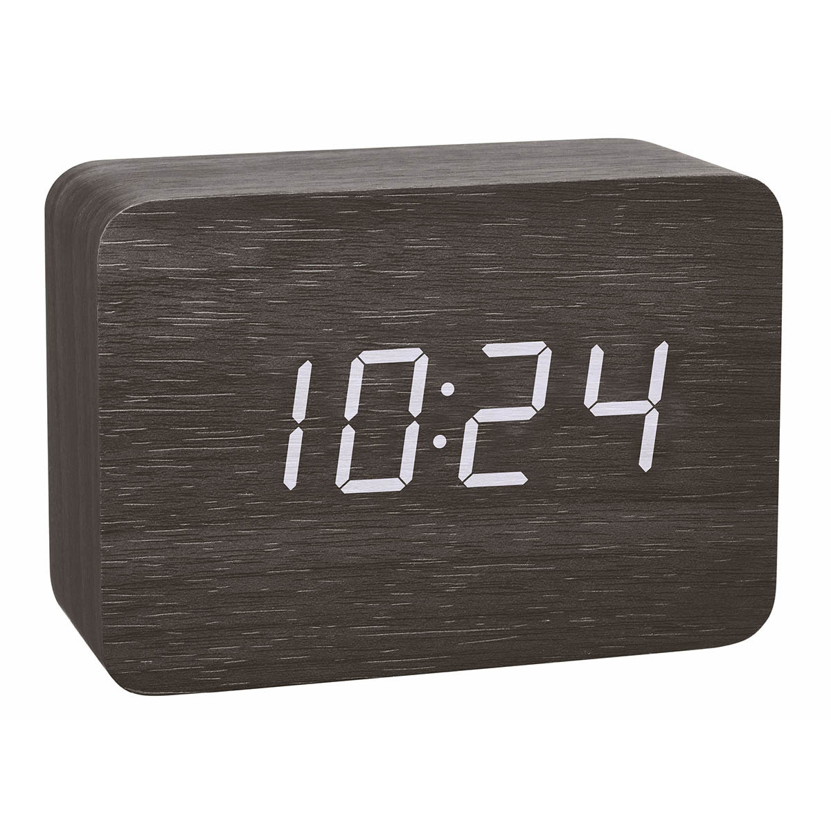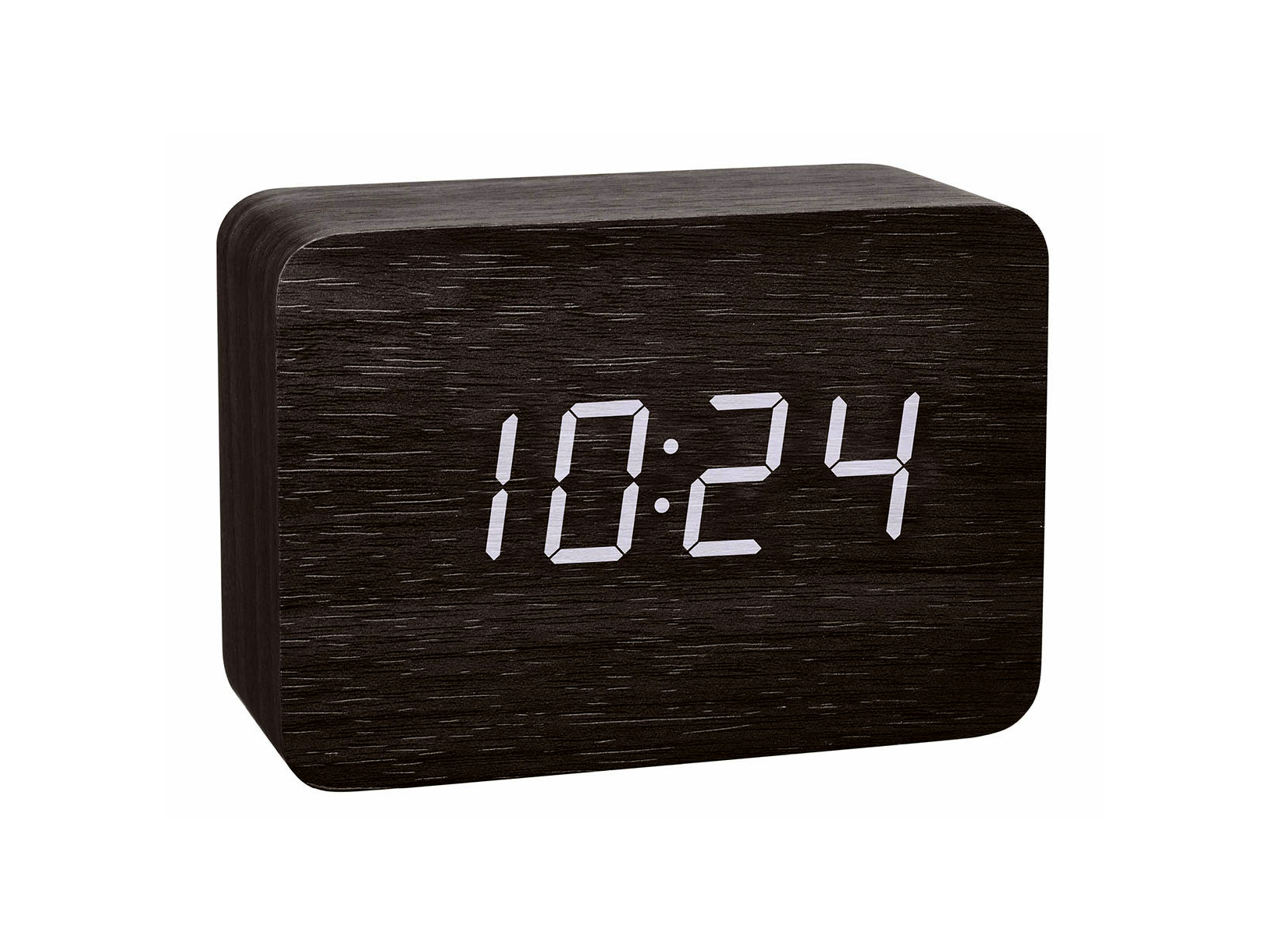 A fa megjelenésű minimalista dizájn láthatatlan kijelzővel illik bármely nappali vagy hálószoba dekorációjához. Ha a mellékelt hálózati adaptert használja, a számjegyek folyamatosan világítanak, és három fényerőszintben állíthatók. Rádiójel automatikusan beállítja a pontos időt.