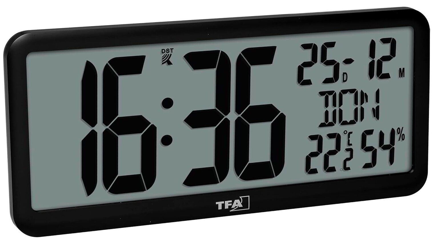 TFA 60.4525.01 Digitális rádióvezérlésű Falióra szobaklímával 35,6 x 11,3 cm - Fekete