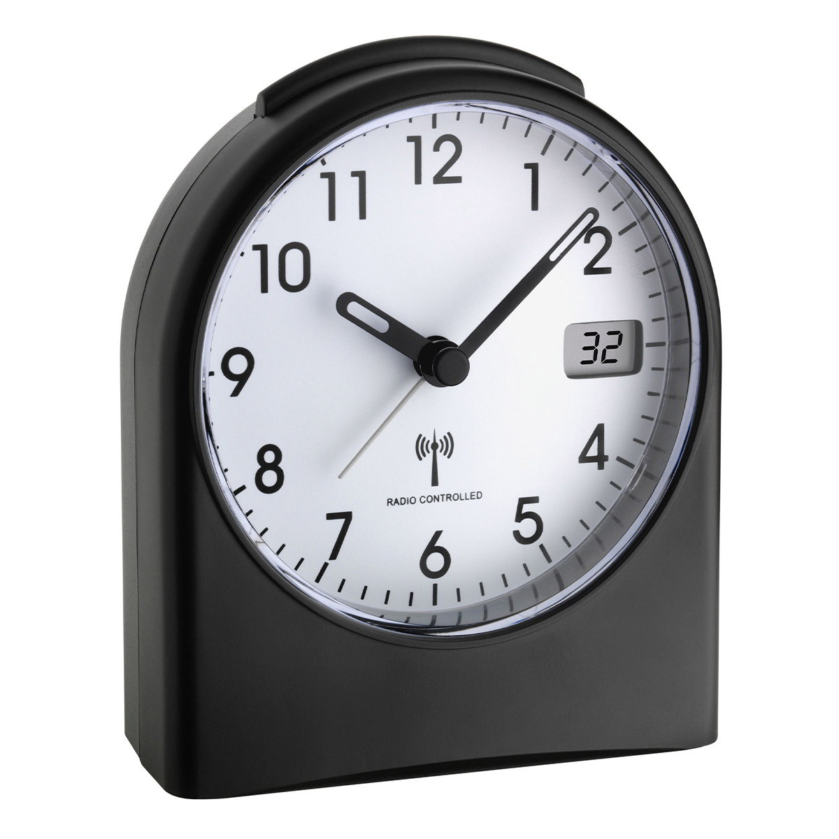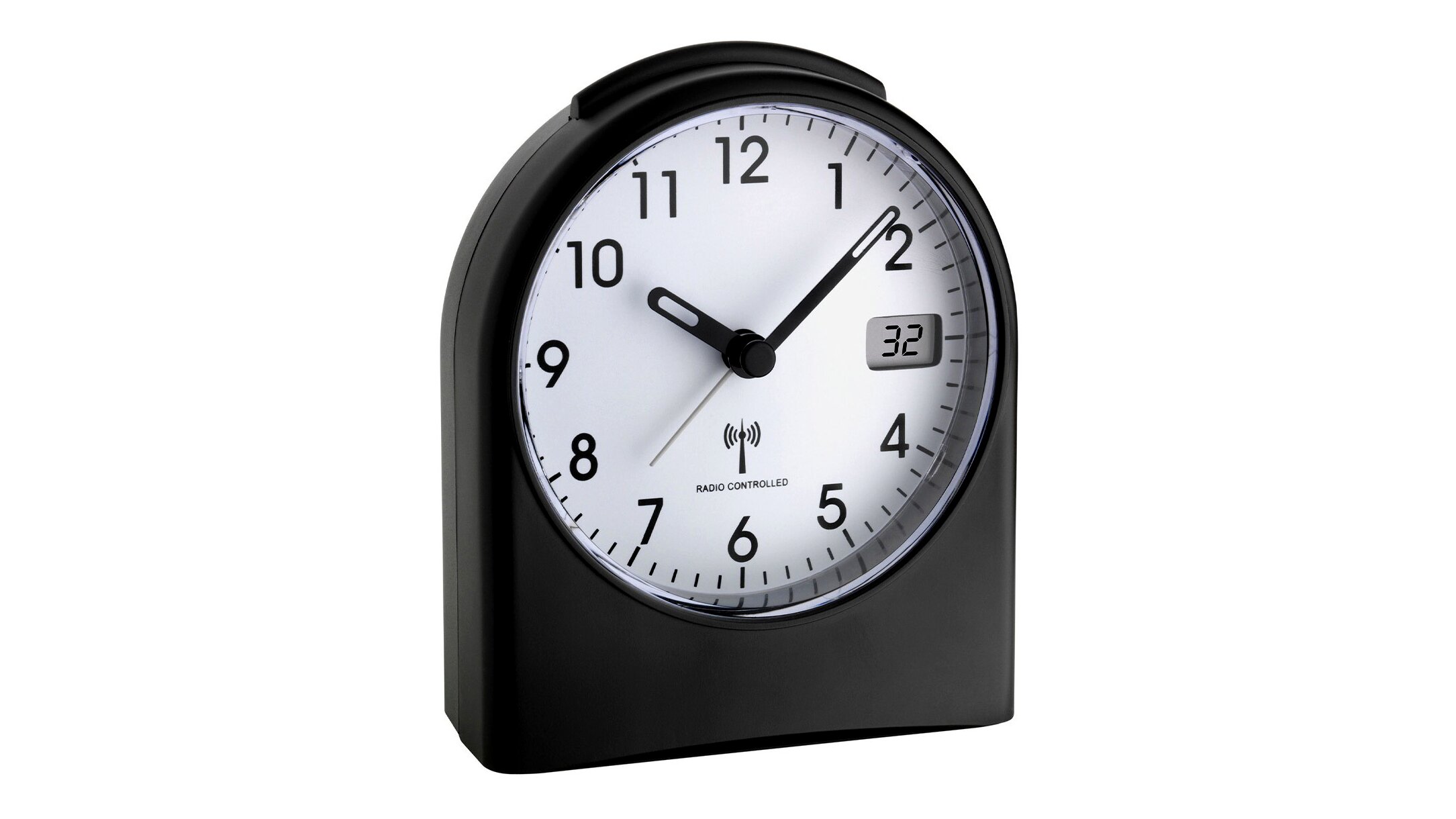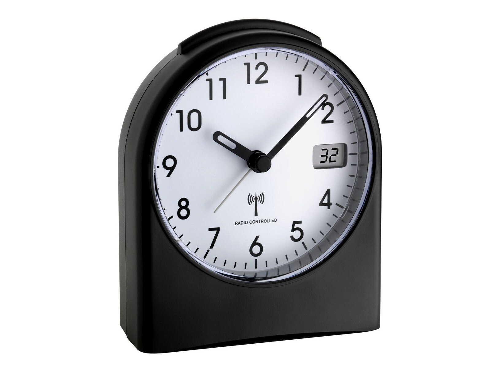 Ez az analóg rádióvezérlésű ébresztőóra a DCF-77 jellel van beállítva, és a kis digitális kijelzőnek köszönhetően másodpercre képes megjeleníteni az időt.