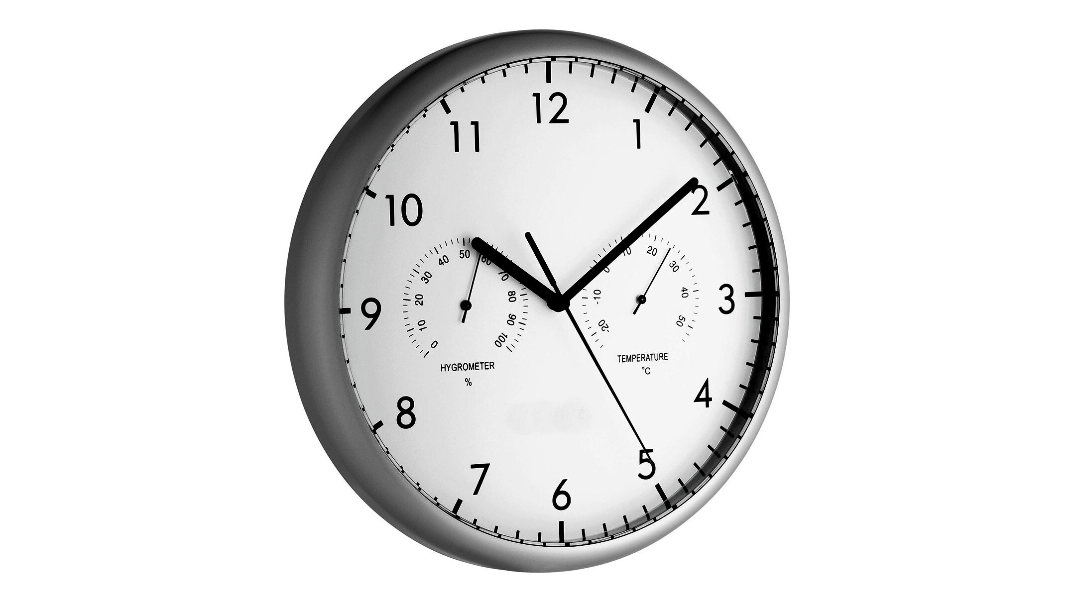 Ezzel a TFA Dostmann fali órával mindig a pontos időt láthatja, és egyszerre figyelheti a belső hőmérsékletet és a páratartalmat.