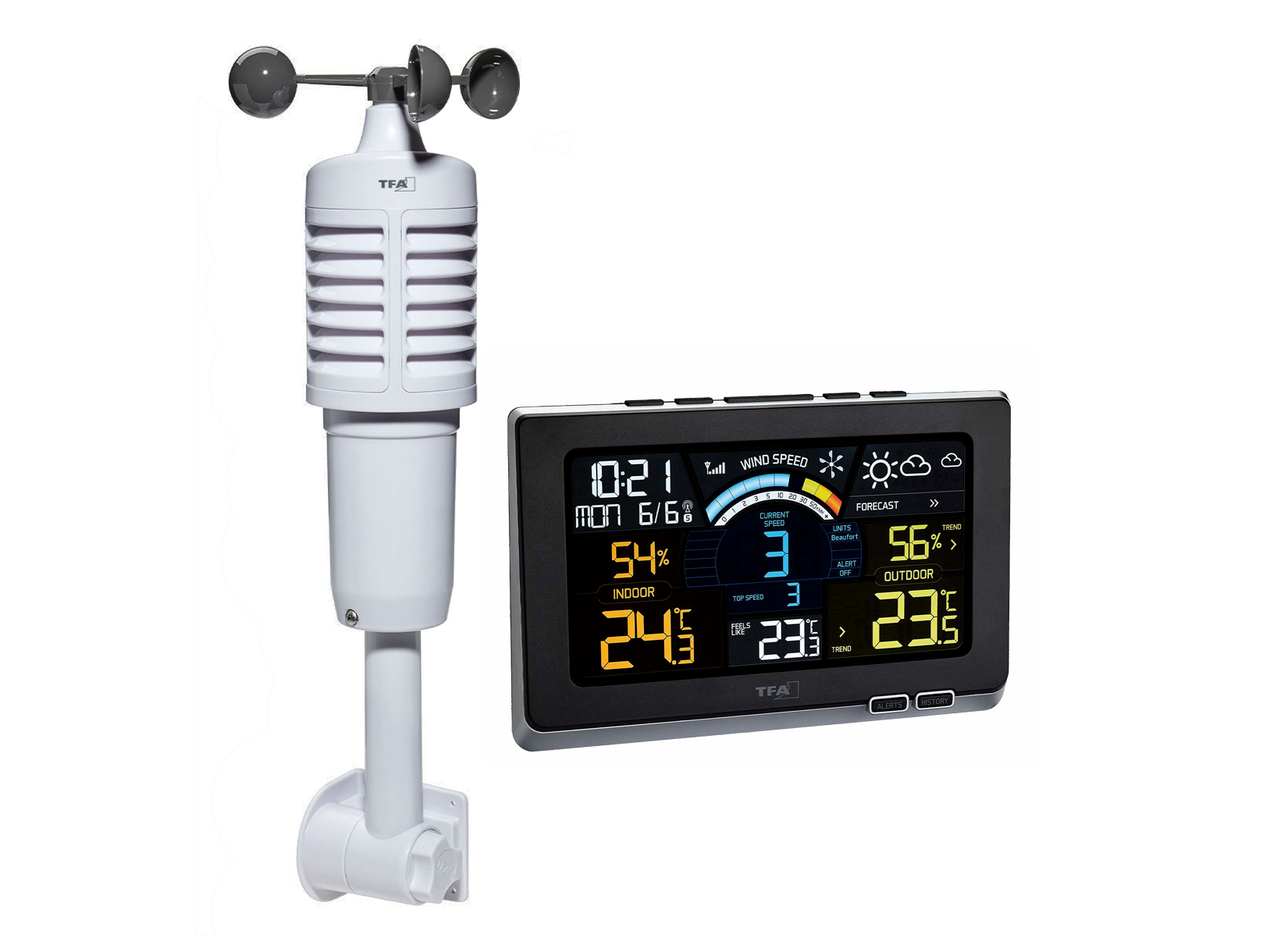 A TFA Dostmann 1964 óta foglalkozik minőségi meteorológiai műszerek és időjárás-állomások gyártásával, így biztos lehet benne, hogy precíz és megbízható eszköz kerül a birtokába. A Spring Breeze modell kifinomult technológiájának és könnyen olvasható kijelzőjének köszönhetően bárki számára ideális választás az időjárás monitorozásához, akár otthon, akár az irodában.