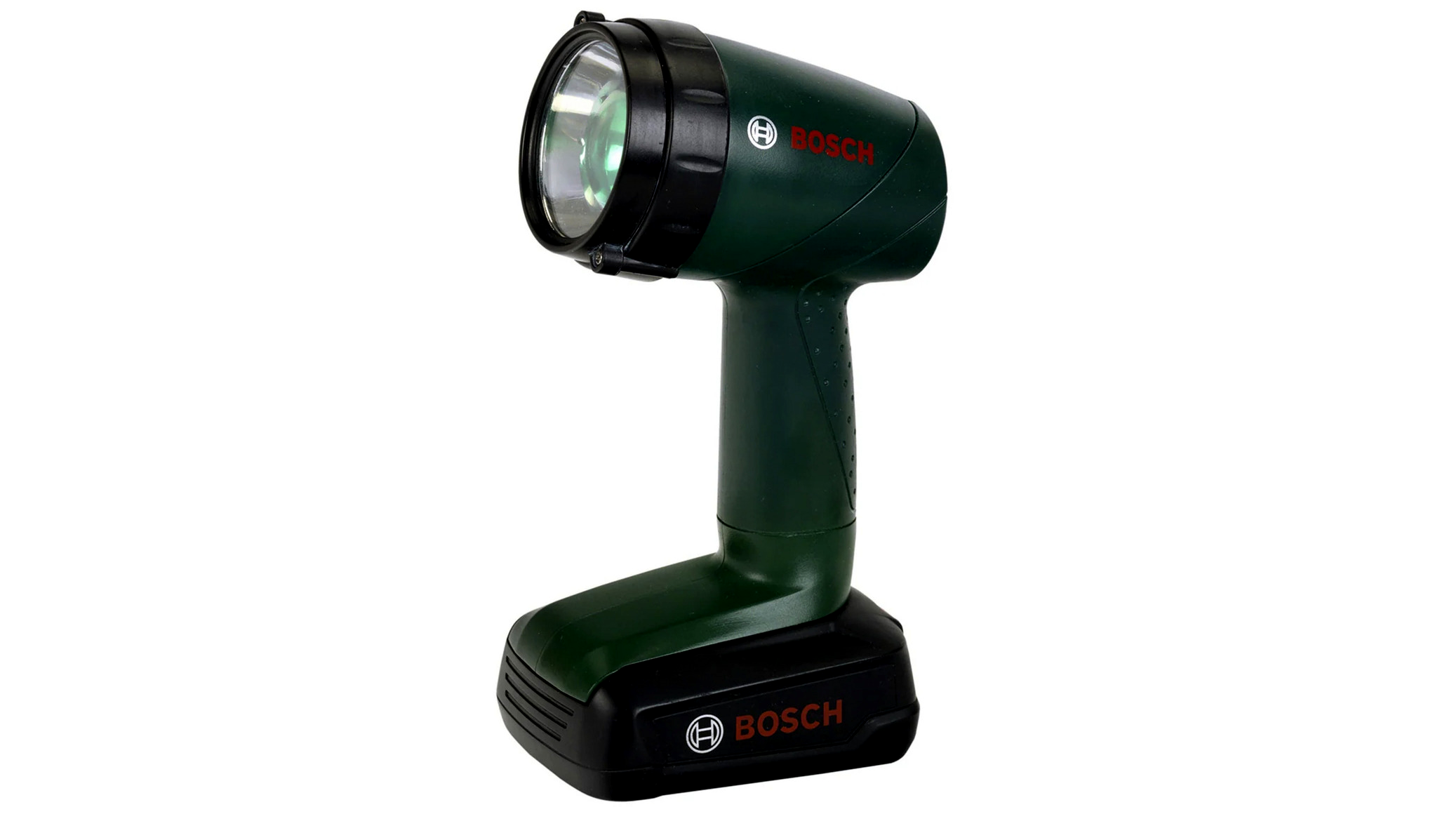 • Valósághű Bosch dizájn: a klasszikus zöld/fekete színvilág és formavilág a valódi Bosch munkalámpákat idézi, így a gyerekek úgy érezhetik, igazi szerszámot tartanak a kezükben.
