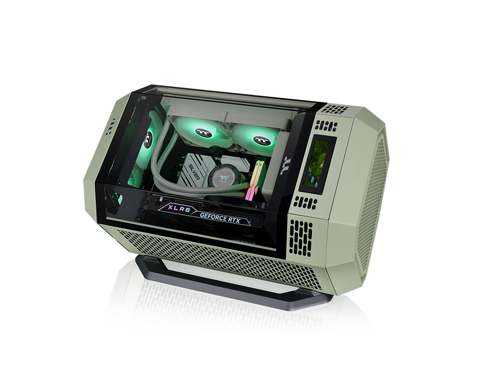 A csomag tartalmazza az alsó borítópanelt és a kijelző állványt, amely lehetővé teszi a ház stílusos bemutatását. Az alsó panelen elhelyezett szűrő hatékonyan védi a házat a portól. A Thermaltake biztosítja, hogy felhasználói igényeik szerint alakíthassák házukat az állványkészlettel.