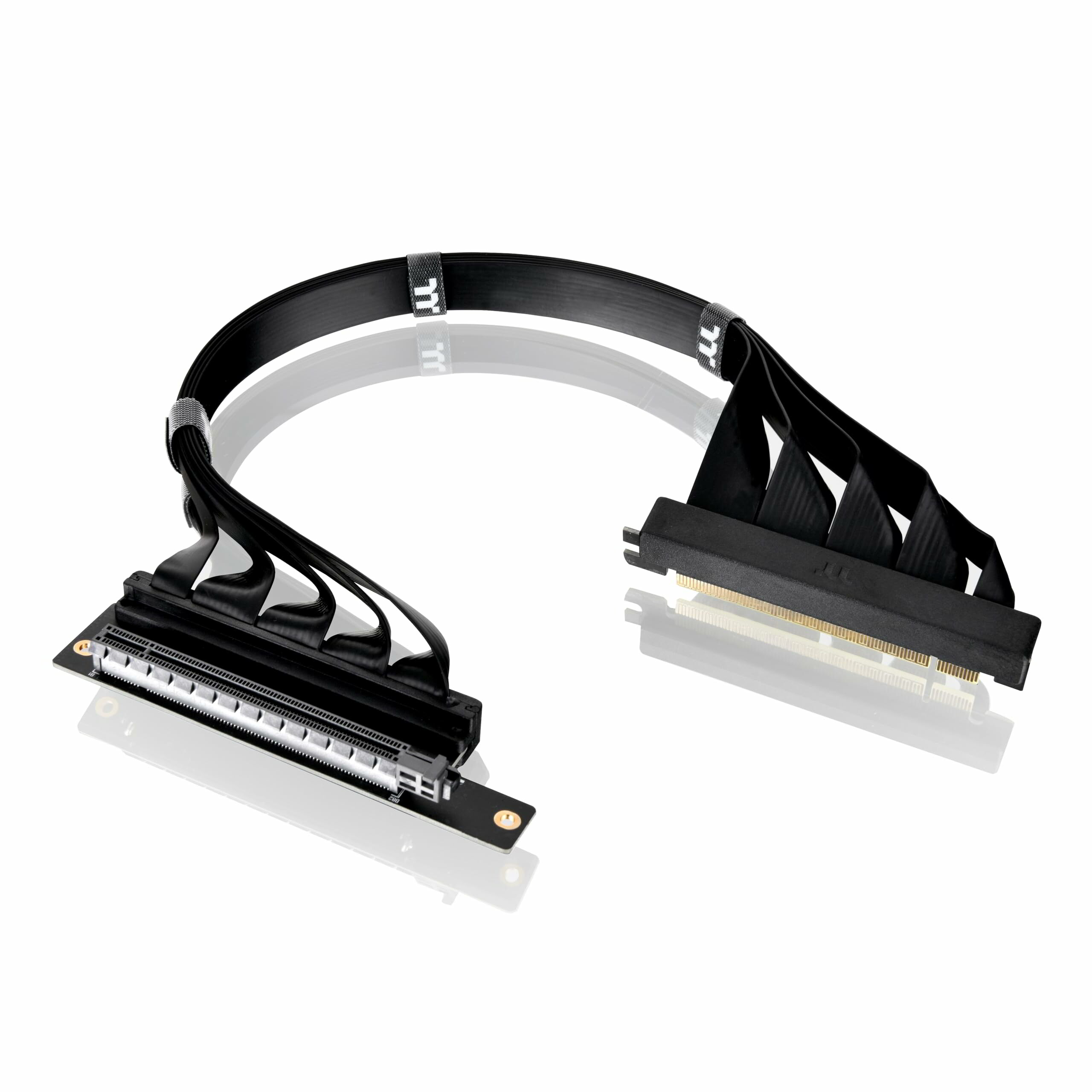 A Thermaltake PCI-E 4.0 Dual 90° Riser Kábel, amely 40 cm hosszúságú és elegáns fekete színben érhető el, lehetővé teszi, hogy a legújabb technológiával felszerelt PCIe 4.0 x16 kártyáidat megfelelően és biztonságosan helyezd el a számítógépházon belül. Az innovatív, 90 fokos kettős külső design lehetővé teszi a kábel tiszta és hatékony elrendezését, akár szűk helyeken is.