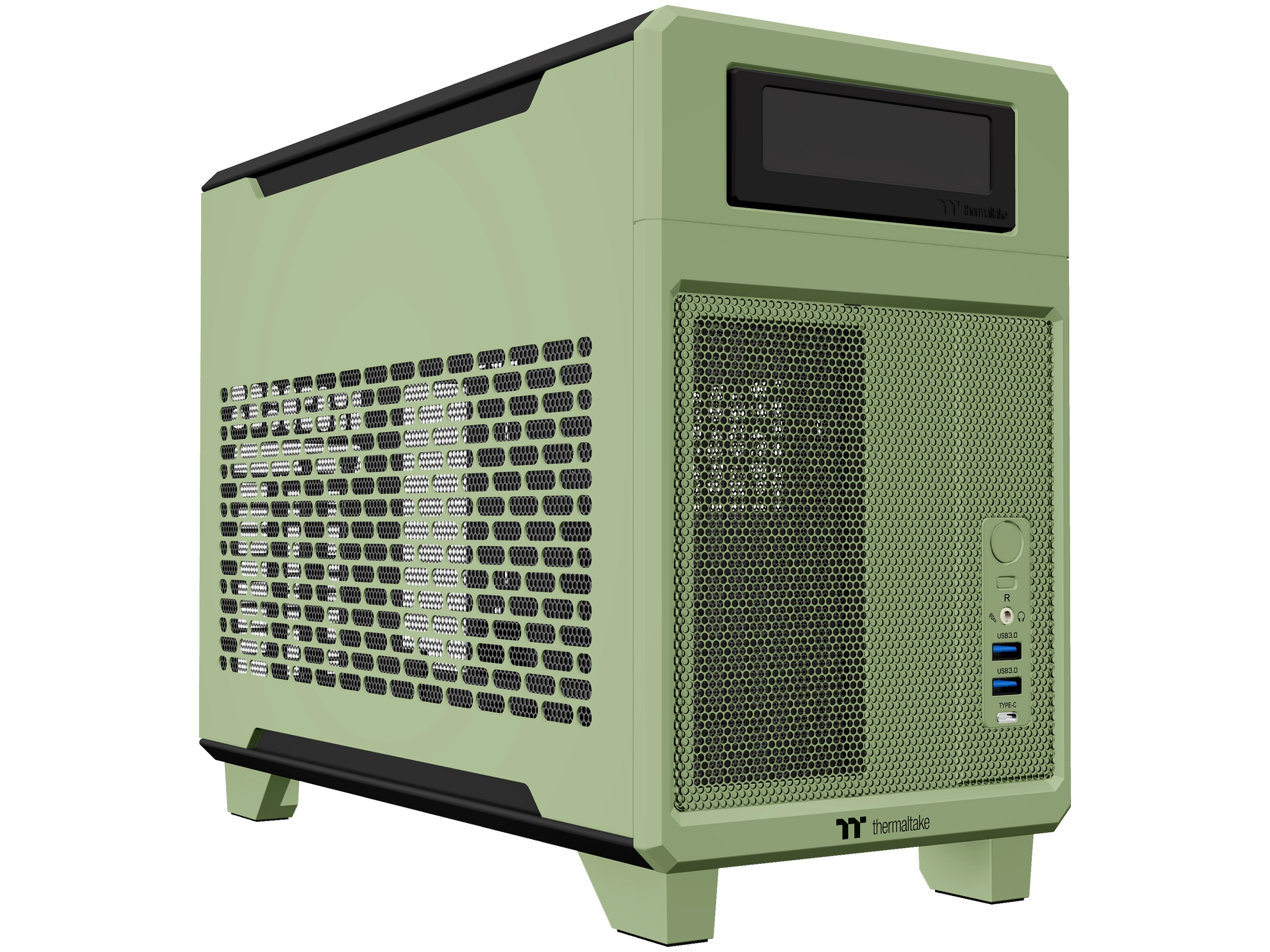 A Thermaltake TR100 mini-tower ház egy rendkívül kompakt, 18,4 literes formavilággal rendelkező Small Form Factor (SFF) ház, amely kiváló részletekkel rendelkezik. Az egység jobb oldalán található a Mini-ITX alaplap és az SFX tápegység, míg a grafikus kártya a bal oldalon van elhelyezve és egy mellékelt PCI-e 4.0 emelőkábellel csatlakozik az alaplaphoz. A hűtésrendszer ezen fontos alkatrészek fölött található: a TR100 képes egy 280 mm-es AIO (All-in-One) hűtőrendszert fogadni a CPU hőelvezetéséhez.