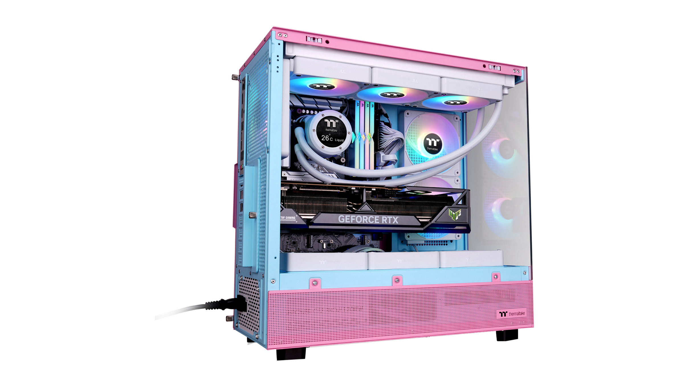 Thermaltake View 270 Plus TG Midi Torony Számítógépház + 3db 120mm ARGB ventilátor - Rózsaszín/Kék