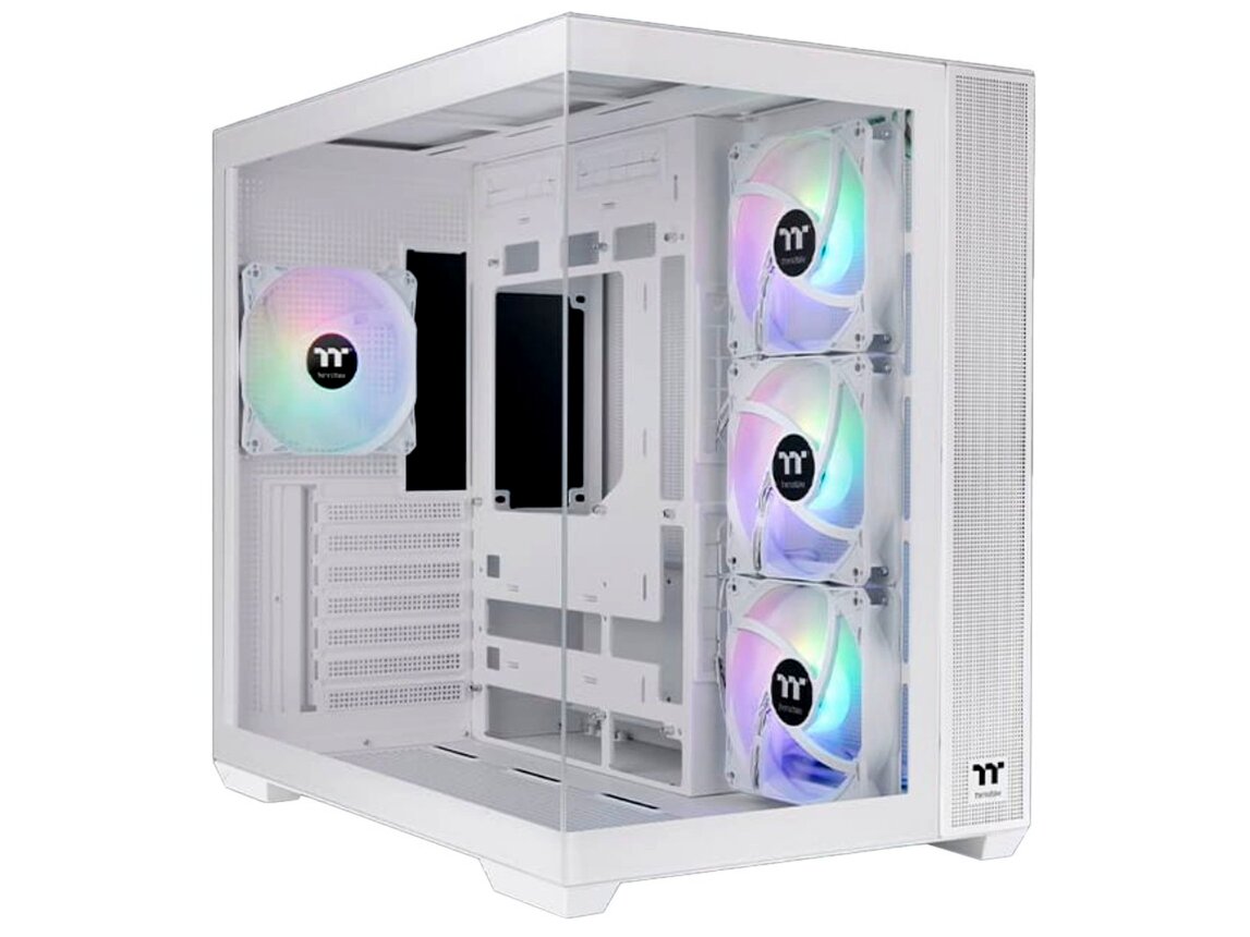 A Thermaltake View 380 TG ARGB Snow ház célja a rendszer legjobb láthatóságának biztosítása a kezelt üvegelők és oldalpaneleken keresztül. Ezáltal könnyedén betekintést nyerhetsz a számítógéped belsejébe, és élvezheted a látványt, amit a szépen rendezett belső tér és a színes világítás nyújt.