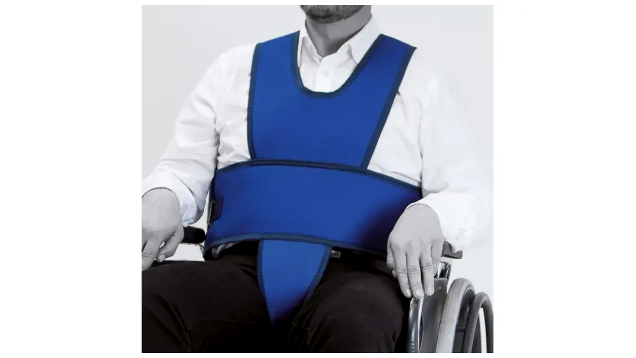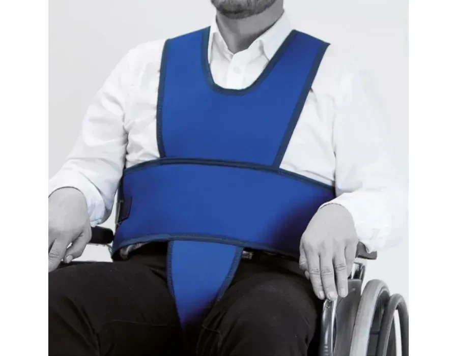 5-pontos betegrögzítő biztonsági mellény kerekesszékbe - Kék (Méret: L)