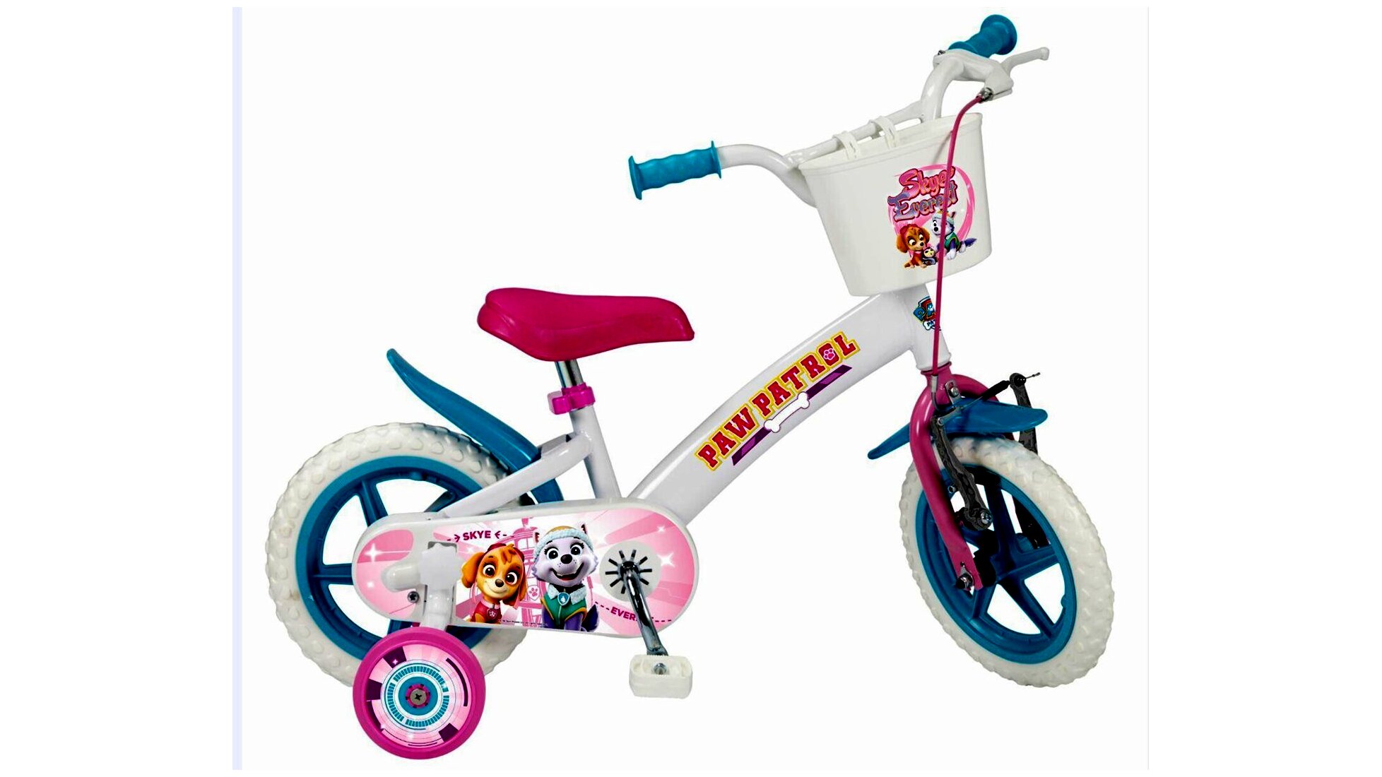 A 12"-os Paw Patrol kerékpár állítható nyereggel és kormányrúddal, első kosárral és színes Paw Patrol matricával is rendelkezik.