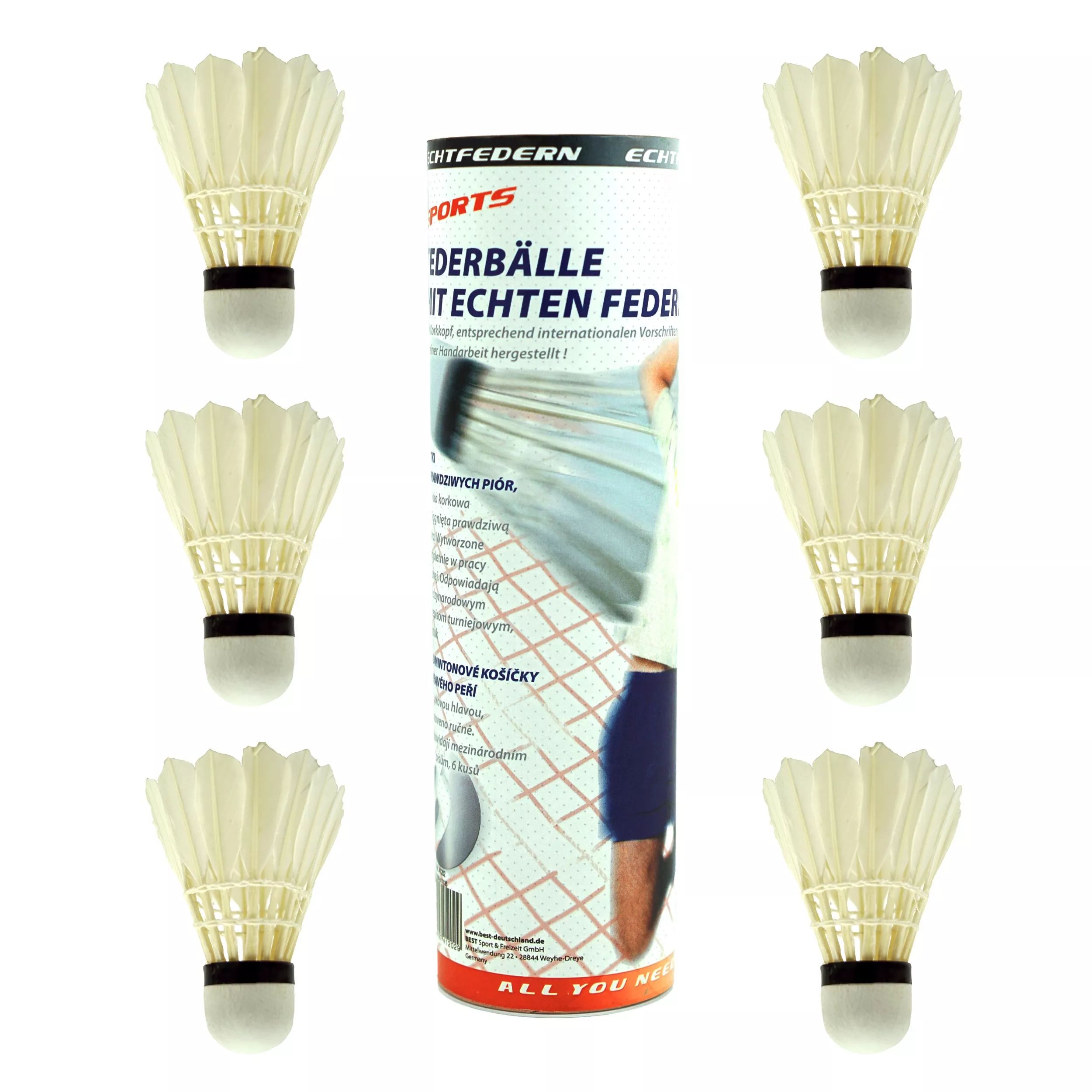 - Valódi toll és parafa fej: A labdák feje valódi tollból és parafából készül, amely jobb stabilitást és irányítást nyújt.