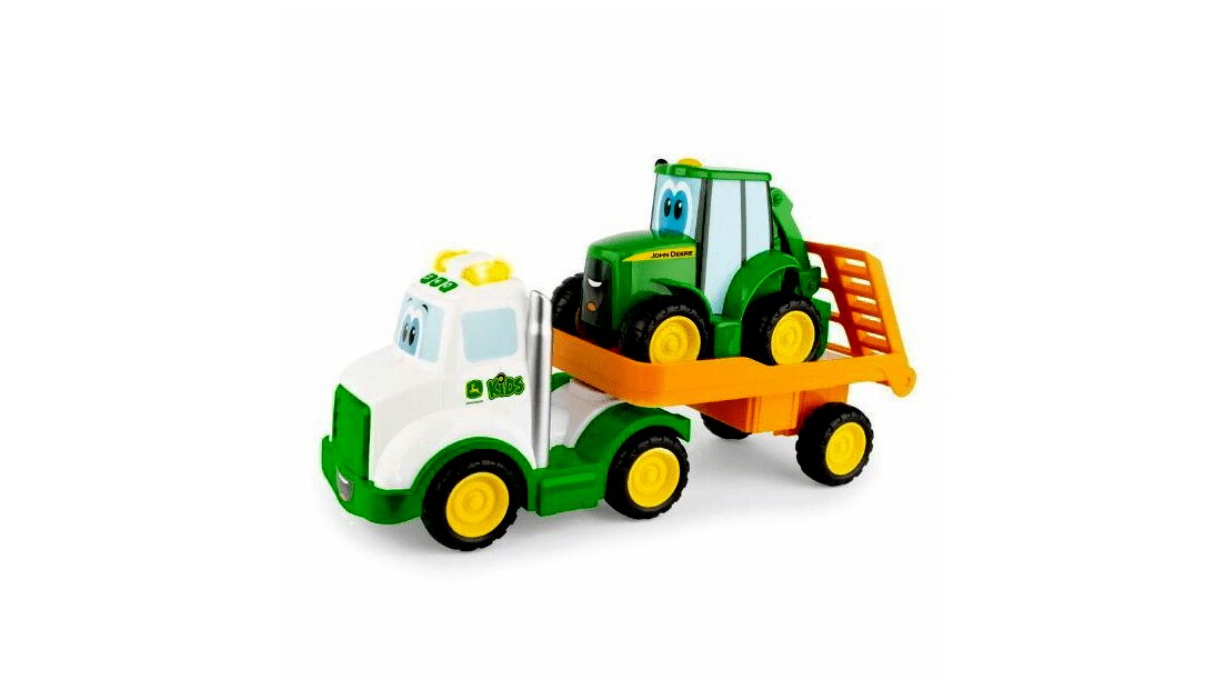 A gyerekek most valódi farmos élményekkel gazdagodhatnak a Tomy John Deere farm szettjével! A zöld John Deere traktorral a legkisebbek is bejárhatják a mezőket és elvégezhetik a tanya munkáját. Ez a vidám és kreatív játékfarm készlet egy emelhető rámpás teherautóból és egy szállítható traktorból áll, melyek garantáltan mosolyt csalnak minden kis gazda arcára.
