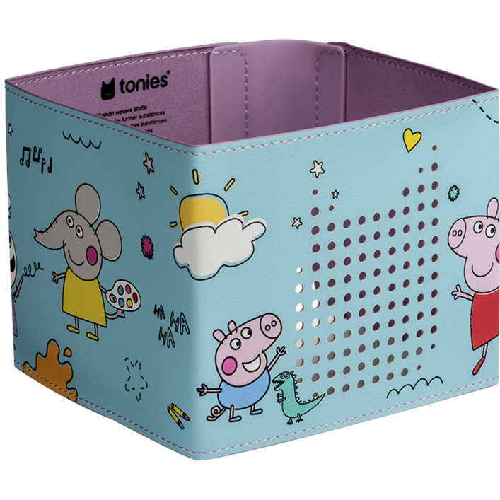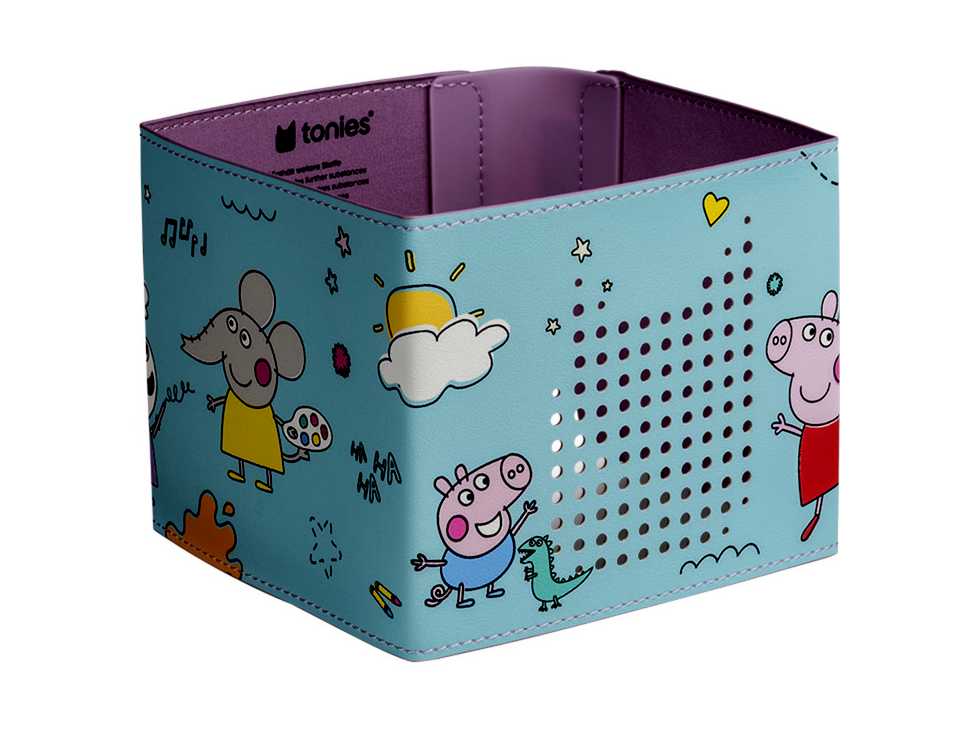 • Könnyű azonosítás: több Toniebox esetén (testvérek, barátok, bölcsis/ovis csoport) a jellegzetes Peppa malac minta azonnal megkülönbözteti a készüléket.