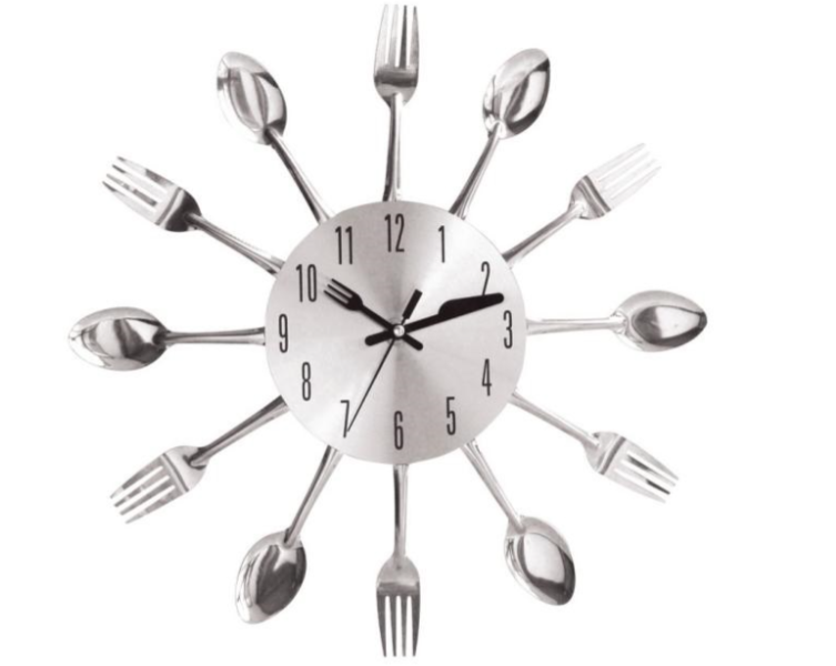 Ha olyan faliórát keres, amely nemcsak az időt mutatja, hanem a helyiség dísze is lesz, ez a különleges evőeszköz designnal készült modell kiváló választás. Elegáns ezüst színe, kreatív kialakítása és jól látható számlapja igazán egyedivé teszi bármely konyha, étkező vagy akár étterem falán.