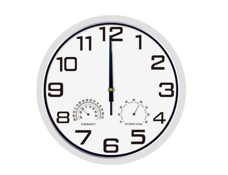 Fehér alapszínű számlap és fekete jelölések gondoskodnak a kiváló olvashatóságról bármilyen fényviszony mellett. A klasszikus színpárosítás elegáns, mégis visszafogott megjelenést kölcsönöz, így könnyen illeszthető szinte bármilyen falszínhez és berendezéshez.