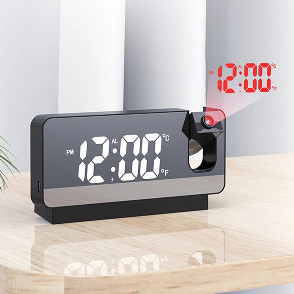 Ez a projektoros digitális ébresztőóra egyszerre praktikus időmérő eszköz és modern lakberendezési kiegészítő. Nagyméretű, tükrös LED kijelzője, a falra vagy plafonra vetített idő, illetve a beépített hőmérséklet-kijelzés gondoskodik róla, hogy mindig egy pillantással lásd a legfontosabb információkat – éjjel és nappal egyaránt.