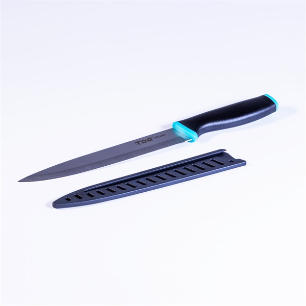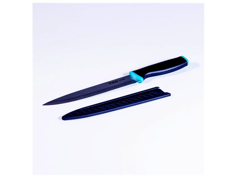 A TOO KT-166 szeletelő kés pengéje 3cr13 rozsdamentes acélból készült, amely közismerten könnyen élezhető és kiváló élmegtartással rendelkezik. Az acélanyag korrózióálló tulajdonságai biztosítják, hogy a kés hosszú ideig megőrzi élességét és nem rozsdásodik, még nedves környezetben sem. A polipropilén markolat ergonomikus kialakításával kényelmes és biztos fogást garantál, miközben a színjelölés megkülönbözteti a kést a többi eszköztől.