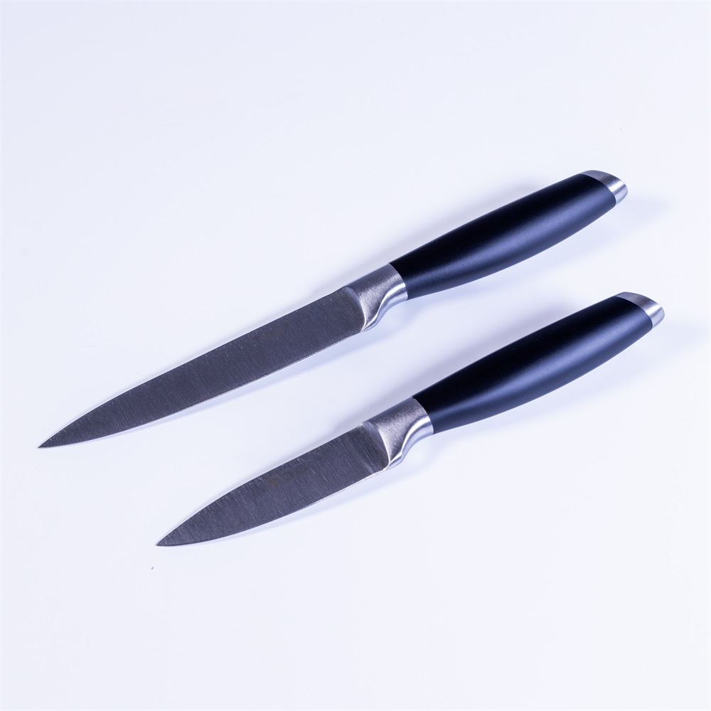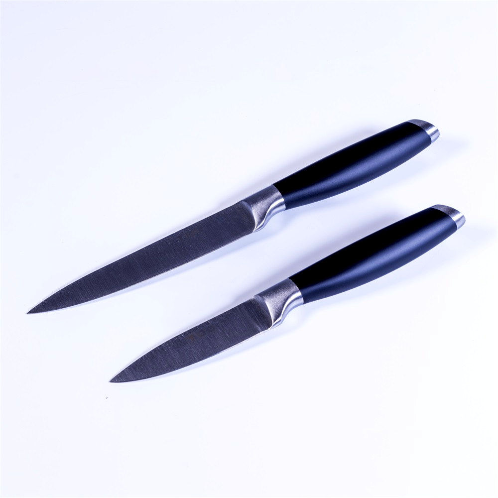 Ismerje meg a TOO KT-174 univerzális- és hámozó késkészletet, amely a konyhai eszközök legkiemelkedőbb darabjai közé tartozik. Ez a készlet nemcsak stílusos megjelenéssel bír fekete és ezüst színkombinációjának köszönhetően, hanem a kiváló minőségű alapanyagoknak hála, rendkívül tartós is.