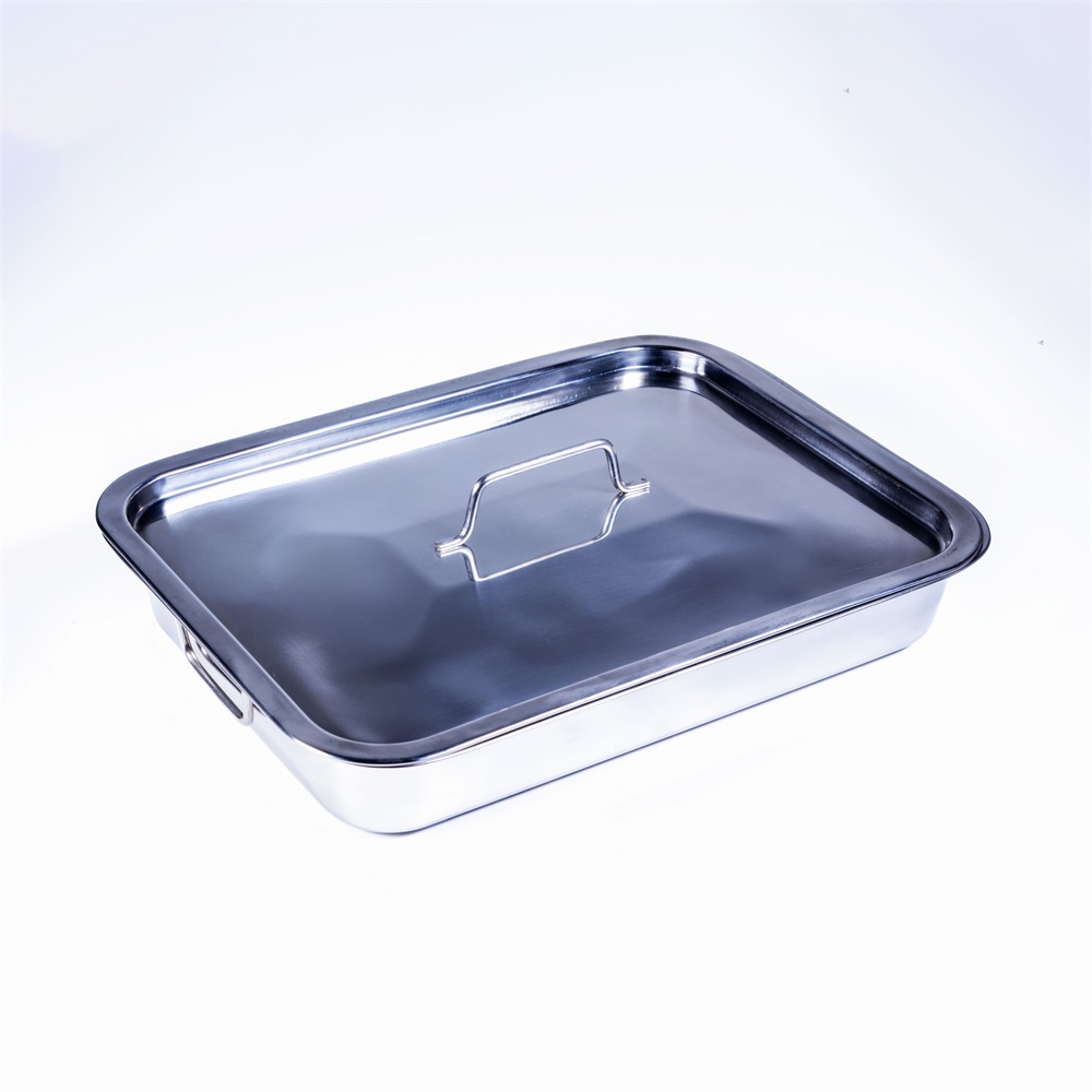 A rozsdamentes acél anyag biztosítja a termék hosszú élettartamát, és ellenáll a rozsdának, így a sütőtál mindig újszerű marad. A fém fogantyú segítségével egyszerűen és biztonságosan helyezheti a tálat a sütőbe, illetve veheti ki onnan.