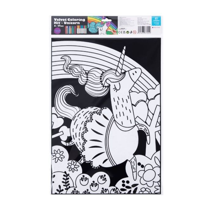 Unikornis témájú, bársonyos tapintású, színezhető kép 16 darab filctollal.