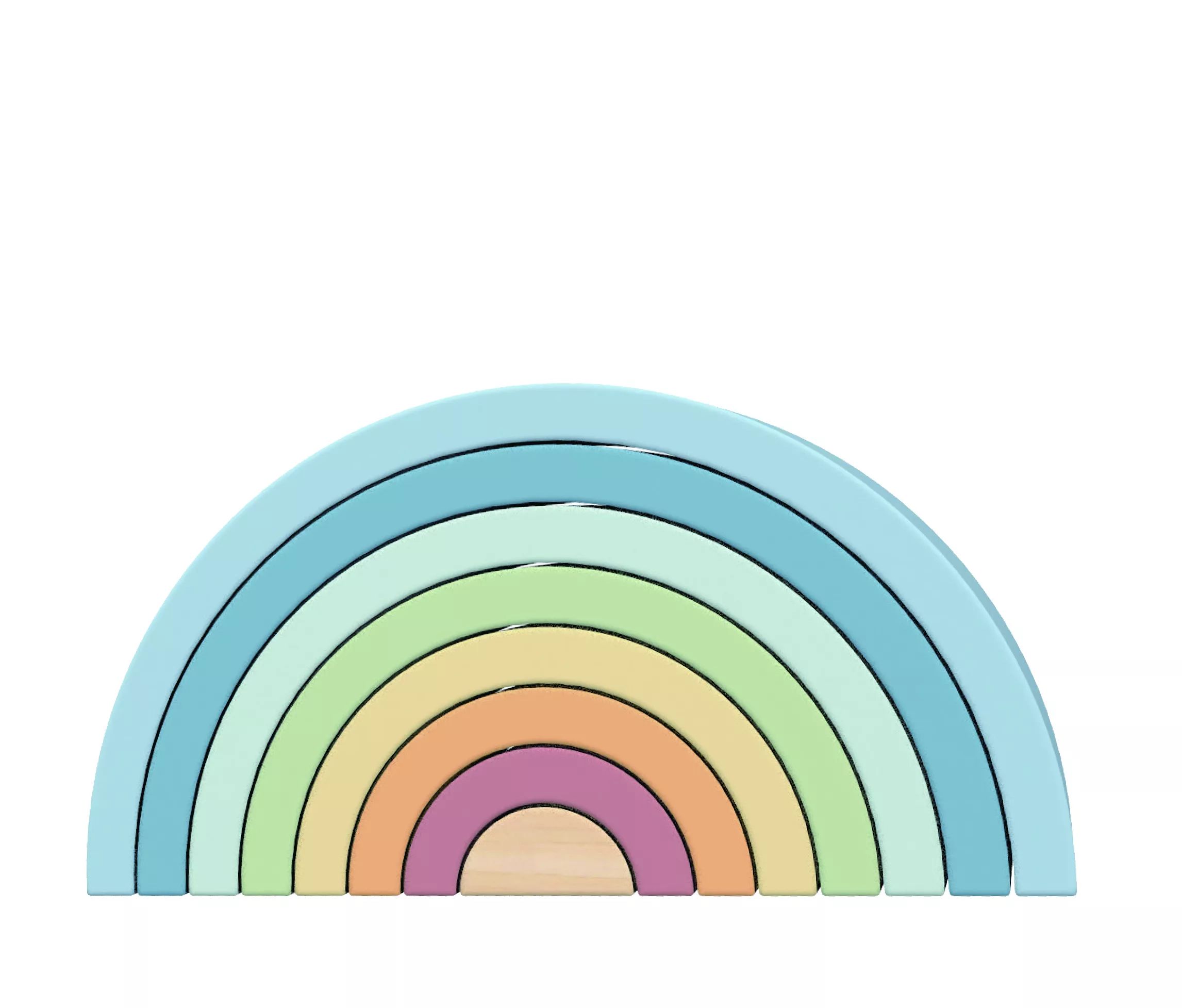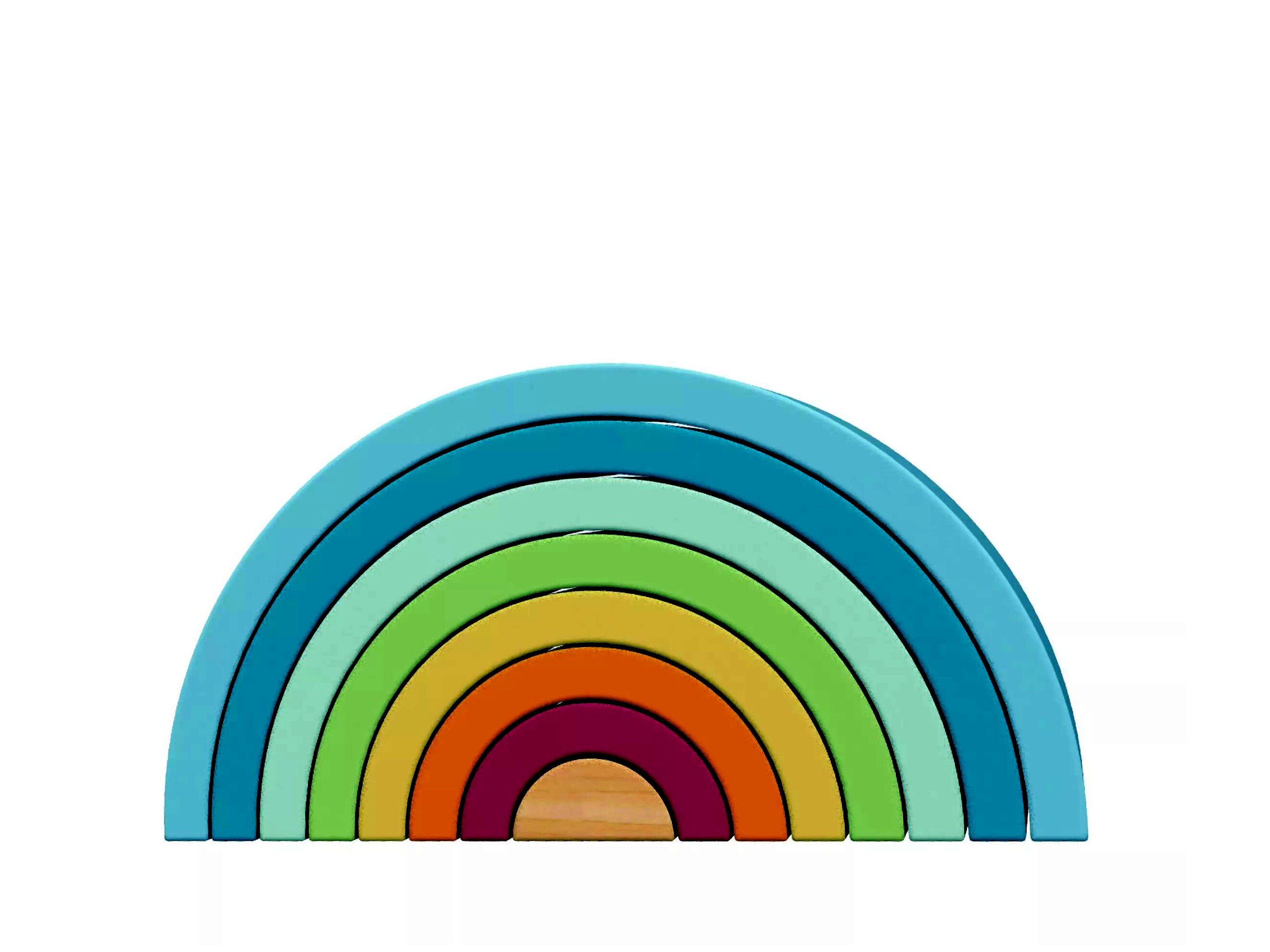 A vidám, íves elemekből álló, szivárványos bébijáték egyszerre dísze a gyerekszobának és fejlesztő eszköz a mindennapi játékhoz. A nyolc különböző méretű és színű ív egymásba illesztve klasszikus szivárványt formáz, de a kicsik fantáziájára bízva alagutakká, hidakká, kerítéssé vagy különleges tornyokká is átalakulhat.
