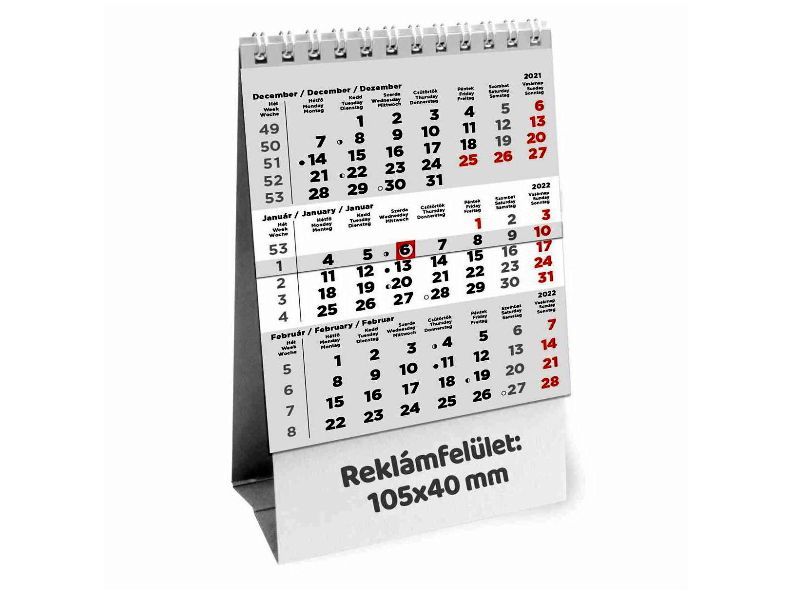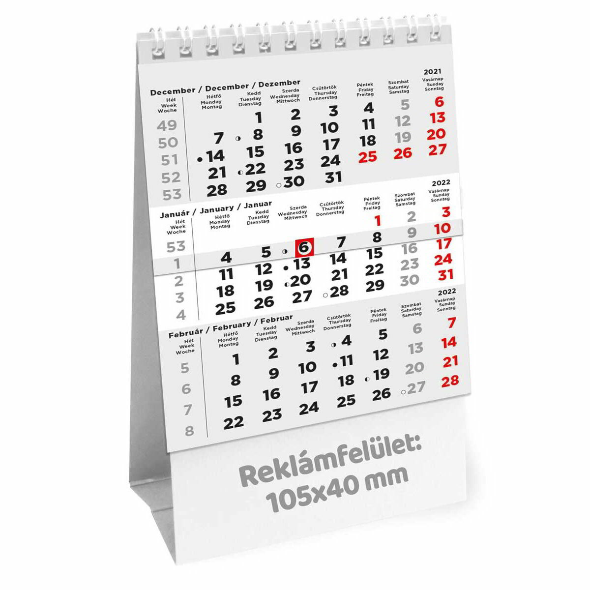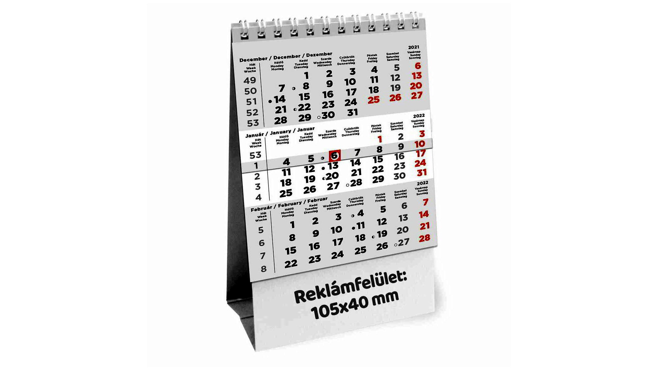 Papírtáblás, fehér tömbös, álló asztali speditőrnaptár. Szitázással emblémázható.