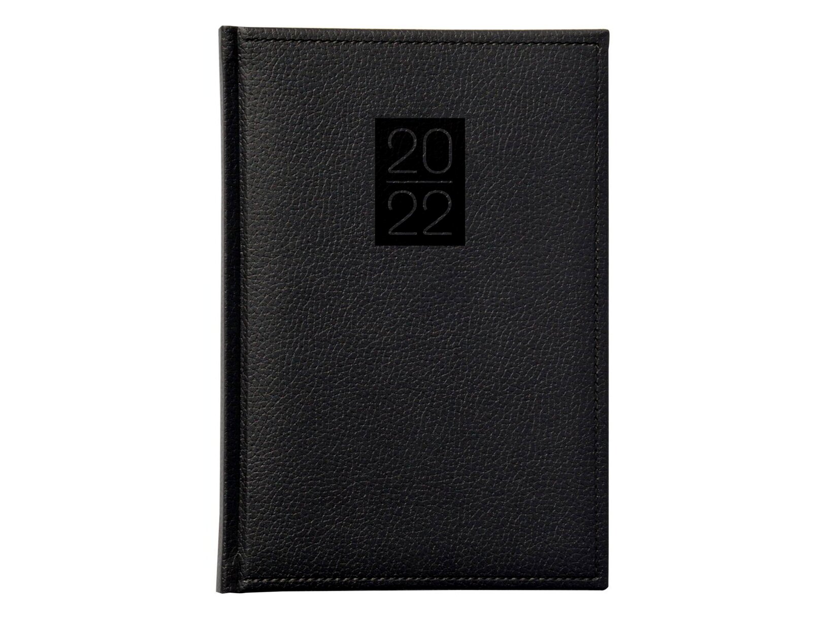 Prégelt, bőrhatású, hőre színeződő műbőr bevonóval, díszkerettel és elegáns évszámmal ellátott, chamois (krémszínű) tömbös napi naptár, színes oromszegővel, jelzőszalaggal és sarokperforációval.