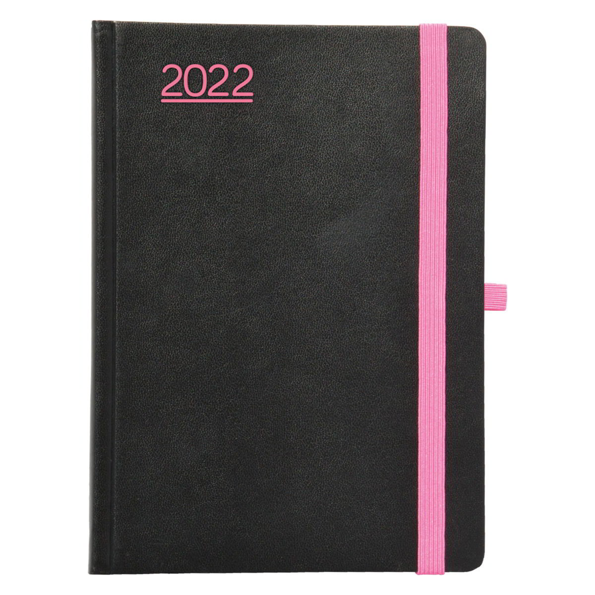 Fényes műbőr bevonóval, az átfogó gumiszalag színével megegyező évszámmal, tolltartóval, és sarokgömbölyítéssel készített, fehér tömbös napi naptár, a gumiszalag színével harmonizáló oromszegővel, jelzőszalaggal és sarokperforációval.