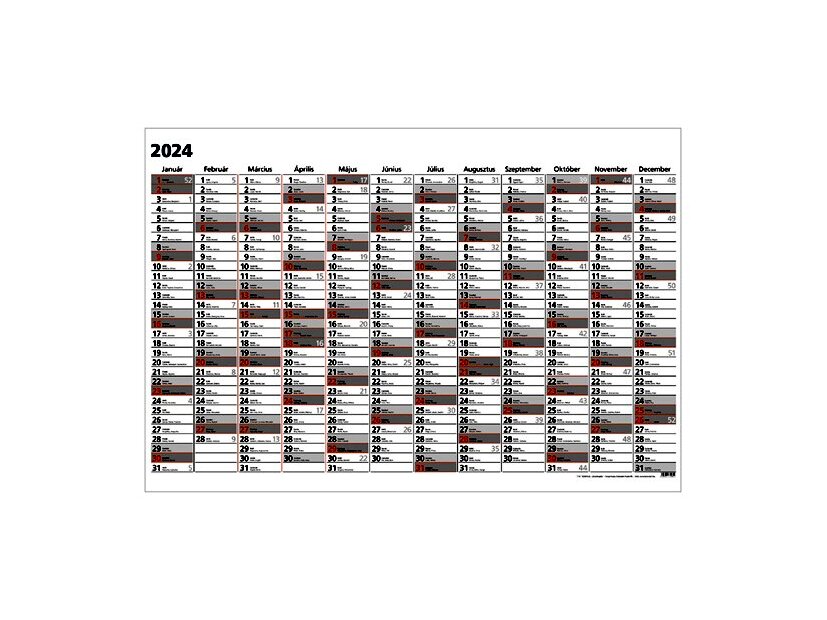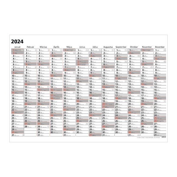 Egyoldalas, fekvő terminus plakátnaptár névnapokkal, emblémázható.