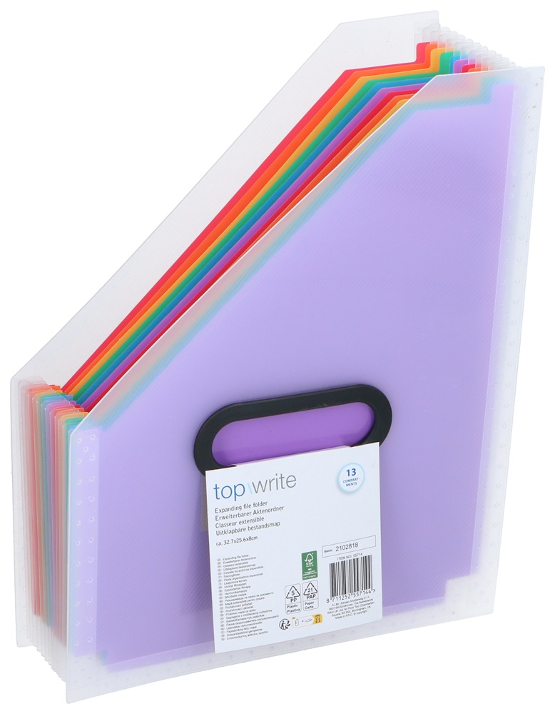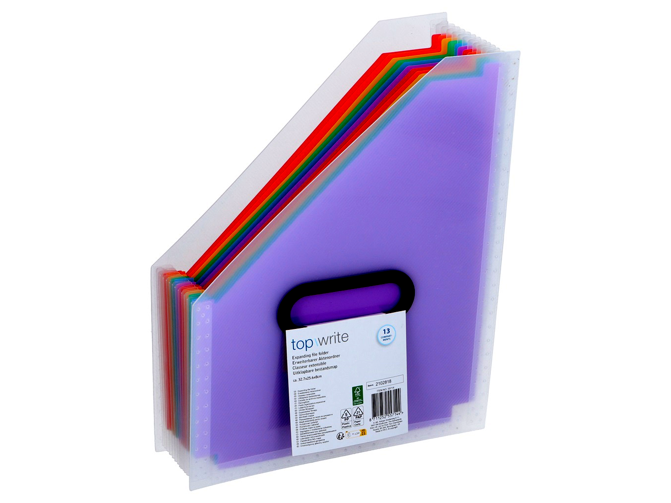 A 13 különálló harmonikazseb és a színes elválasztó lapok segítenek a dokumentumok logikus csoportosításában – például hónapok, projektek, ügyfelek vagy tantárgyak szerint. A különböző színek vizuális kapaszkodót adnak, így a keresett irat néhány mozdulattal előkereshető.