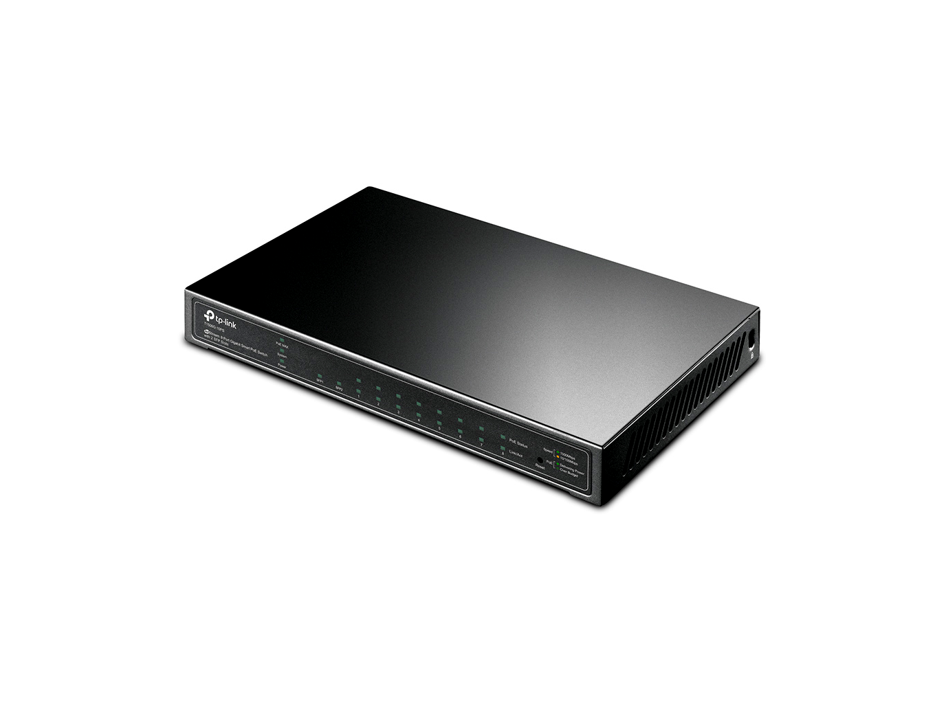 A TP-Link gigabites Smart switch 8 db gigabites RJ-45 csatlakozóval és 2 SFP hellyel rendelkezik, minden RJ-45 csatlakozó támogatja a PoE szabványt 53W tápellátási teljesítménnyel és hasznos PoE tápellátási vezérlési funkcióval. A switch nagy teljesítményű, vállalati szintű QoS-t, hasznos biztonsági stratégiákat és bőséges Layer 2 funkciókat kínál.