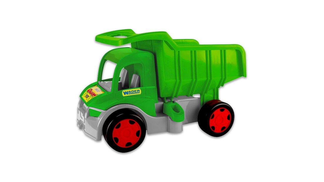 Nagyméretű, színes tologatható dömper, billenthető hátfallal. Nagyon erős műanyagból készült, akár 150 kg-ot is képes elbírni! Hátulját billentheted, sőt, ha van utánfutó hozzá, csatlakoztatni is tudod. Méretek: 55 x 37 x 32 cm. Wader minőség!