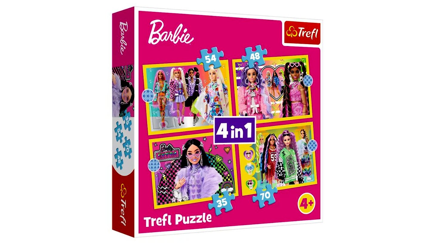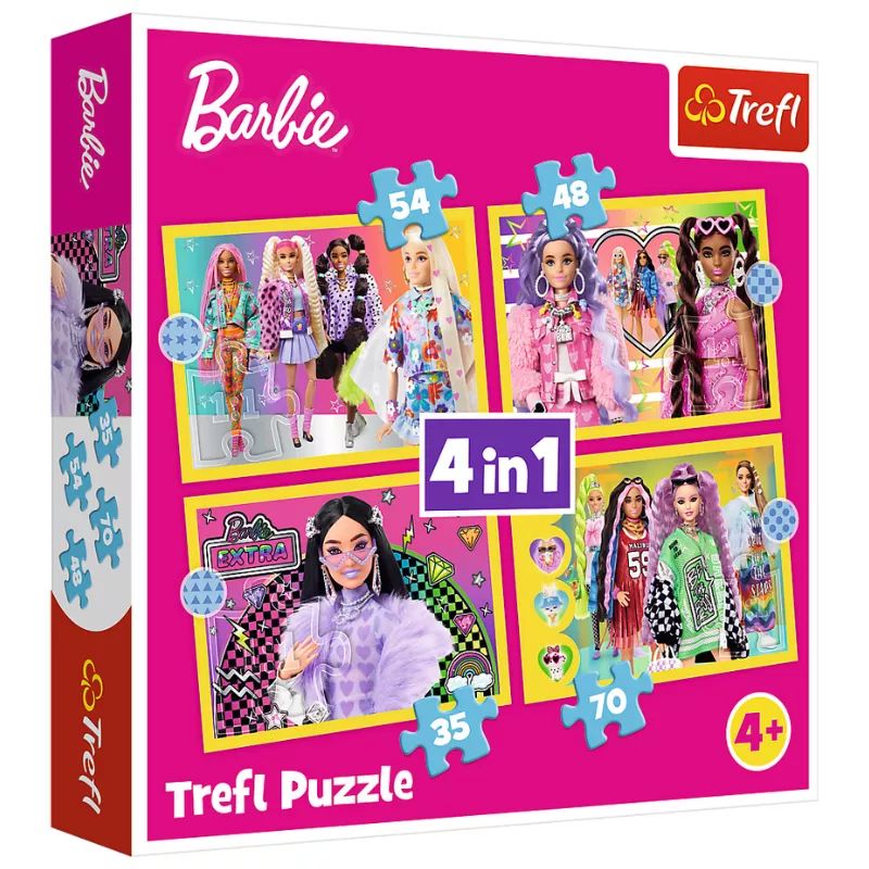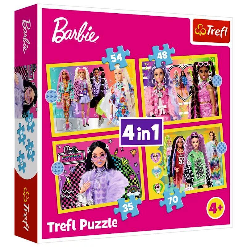 Barbie varázslatos, rózsaszín világának kis rajongói most nem 1, hanem 4 képet is kirakhatnak ennek a Trefl 4 az 1-ben puzzle készletnek a segítségével. A 4 kép egyenként 35, 48, 54 és 70 darabkából áll. A kirakósokdarabok tökéletesen illeszkednek egymáshoz. A puzzle kicsik és nagyok számára egyaránt izgalmas és szórakoztató időtöltés, amit egyszerűen képtelenség megunni.