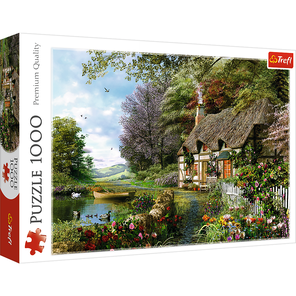 Erdei házikót festői környezetben ábrázoló 1000 db-os puzzle.