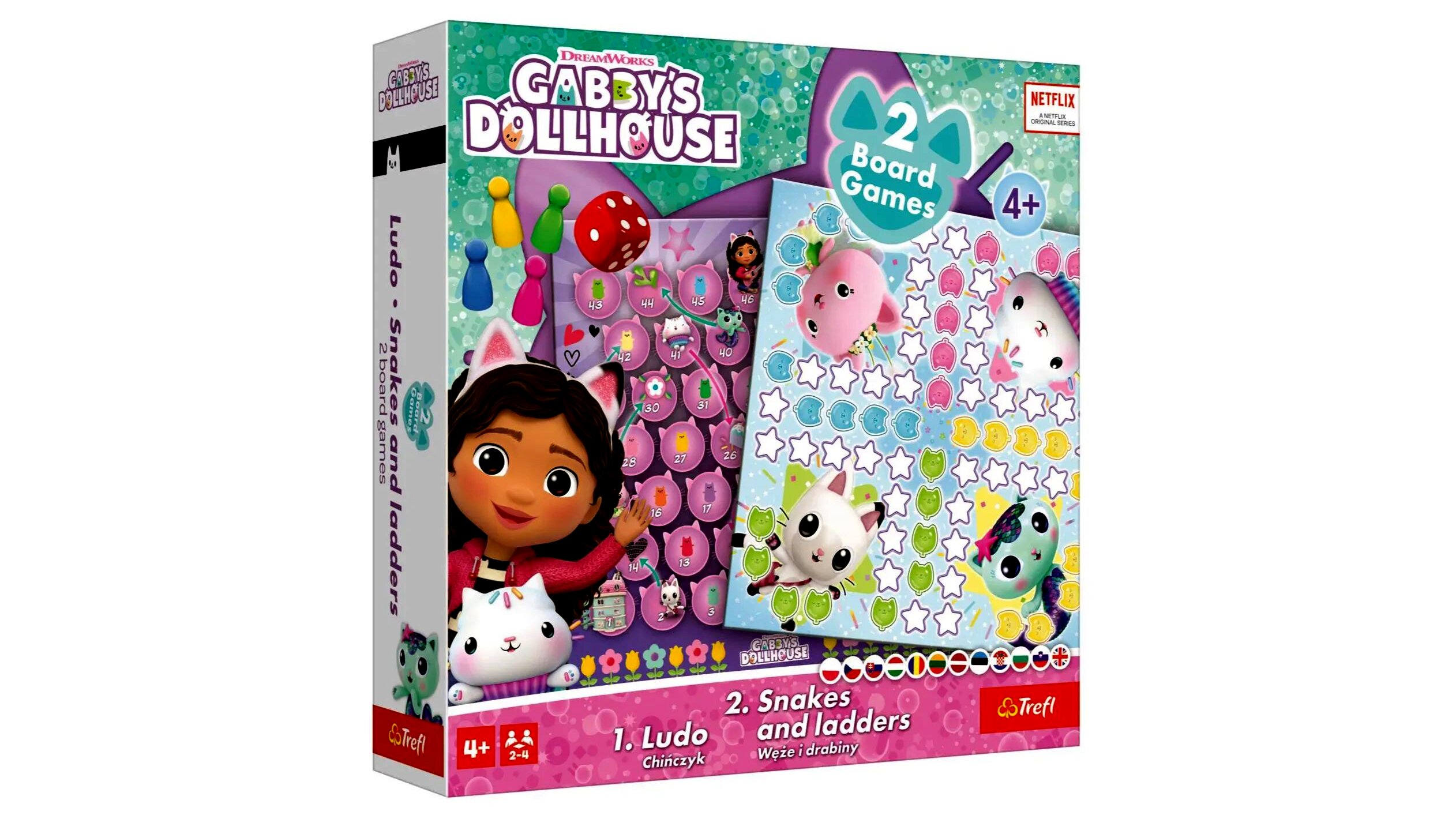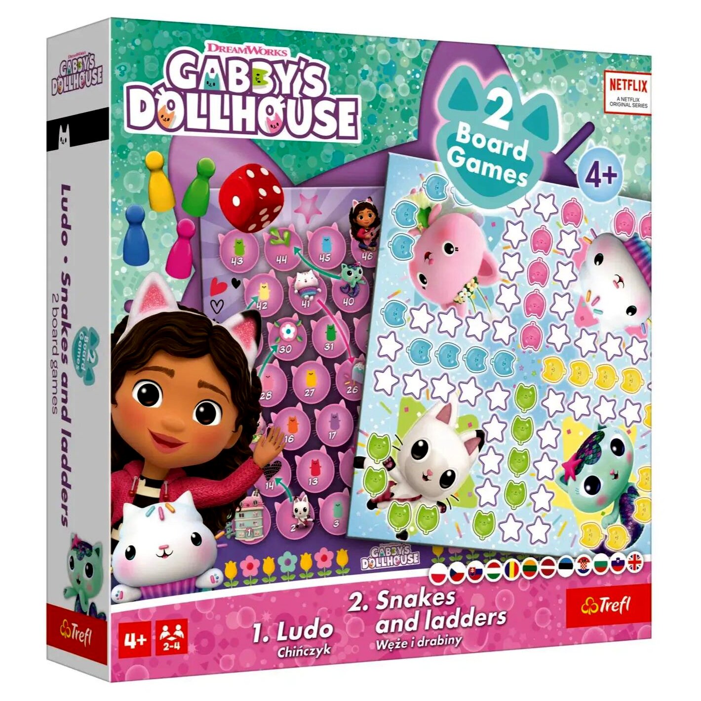 Fedezd fel Gabi babaházának varázslatos világát ezzel a lenyűgöző 2 az 1-ben társasjátékkal! A Trefl gondoskodott arról, hogy kedvenc klasszikus társasjátékaid új köntösben térjenek vissza, Gabi babaháza karaktereivel és grafikáival díszítve.