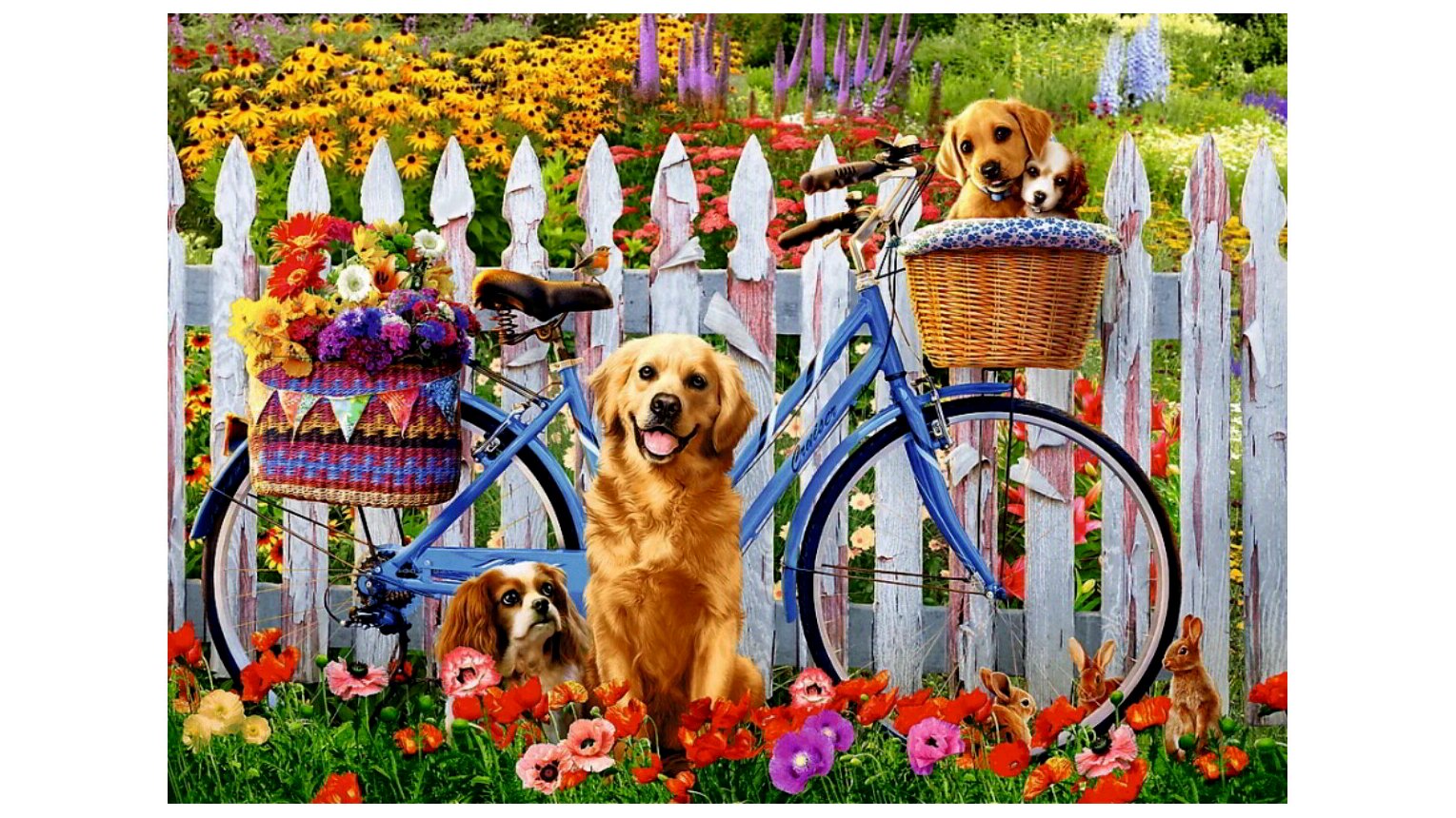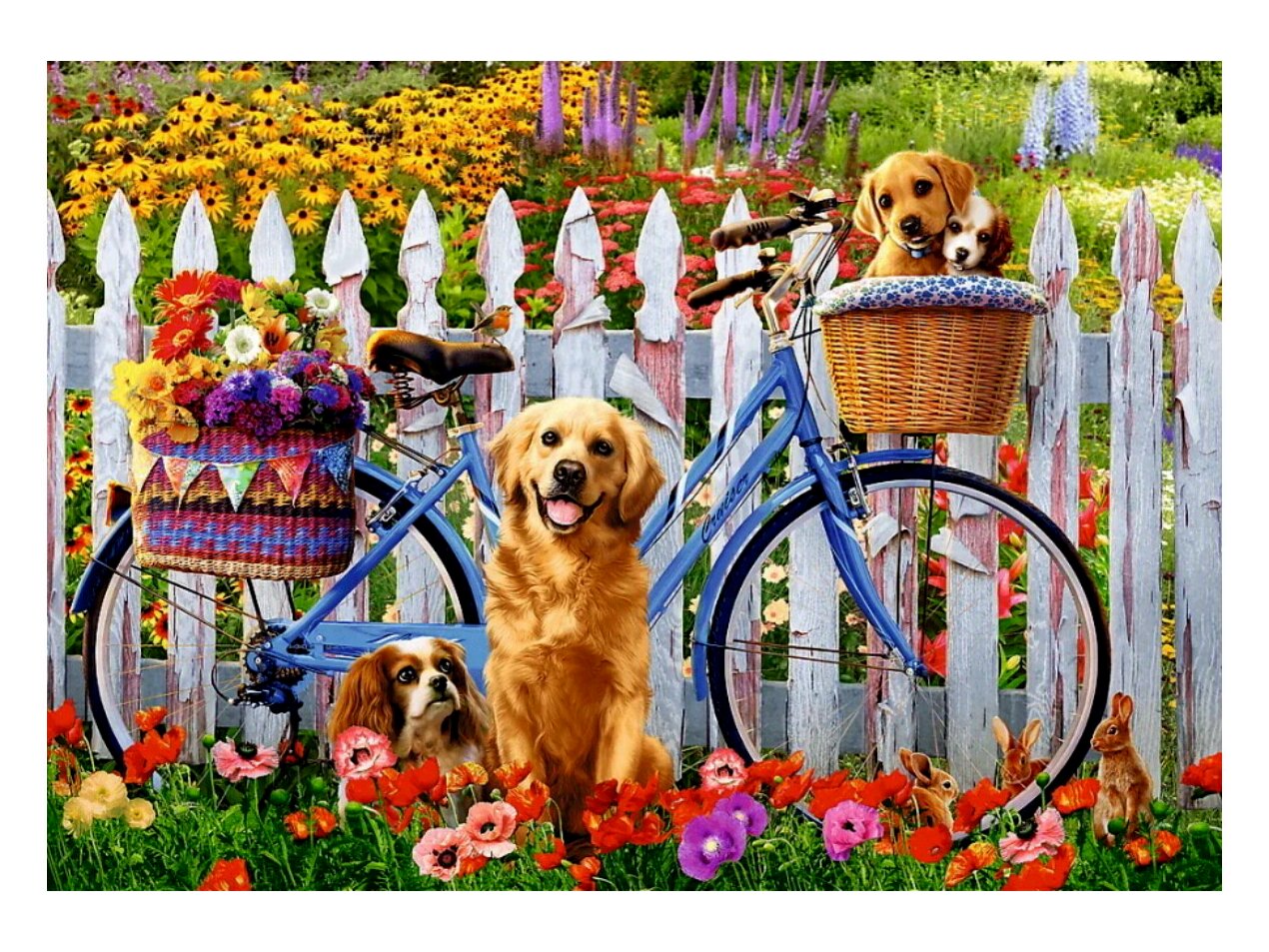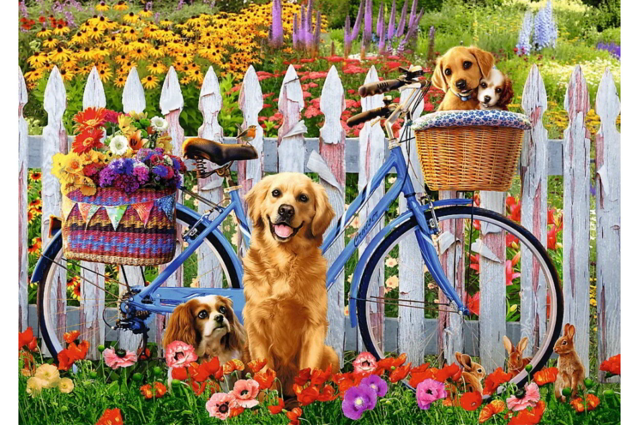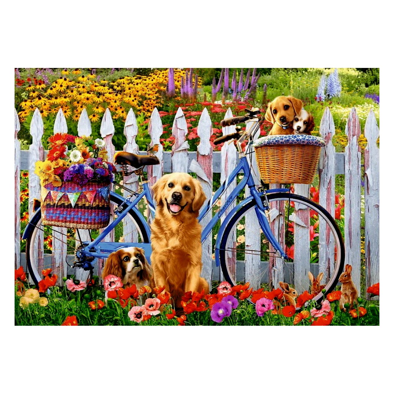 Prémium minőségű puzzle, amely egy kerékpárt ábrázol kutyusokkal.