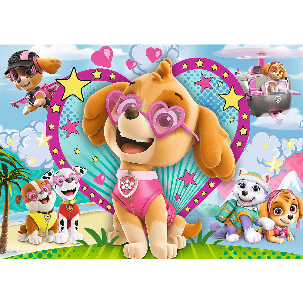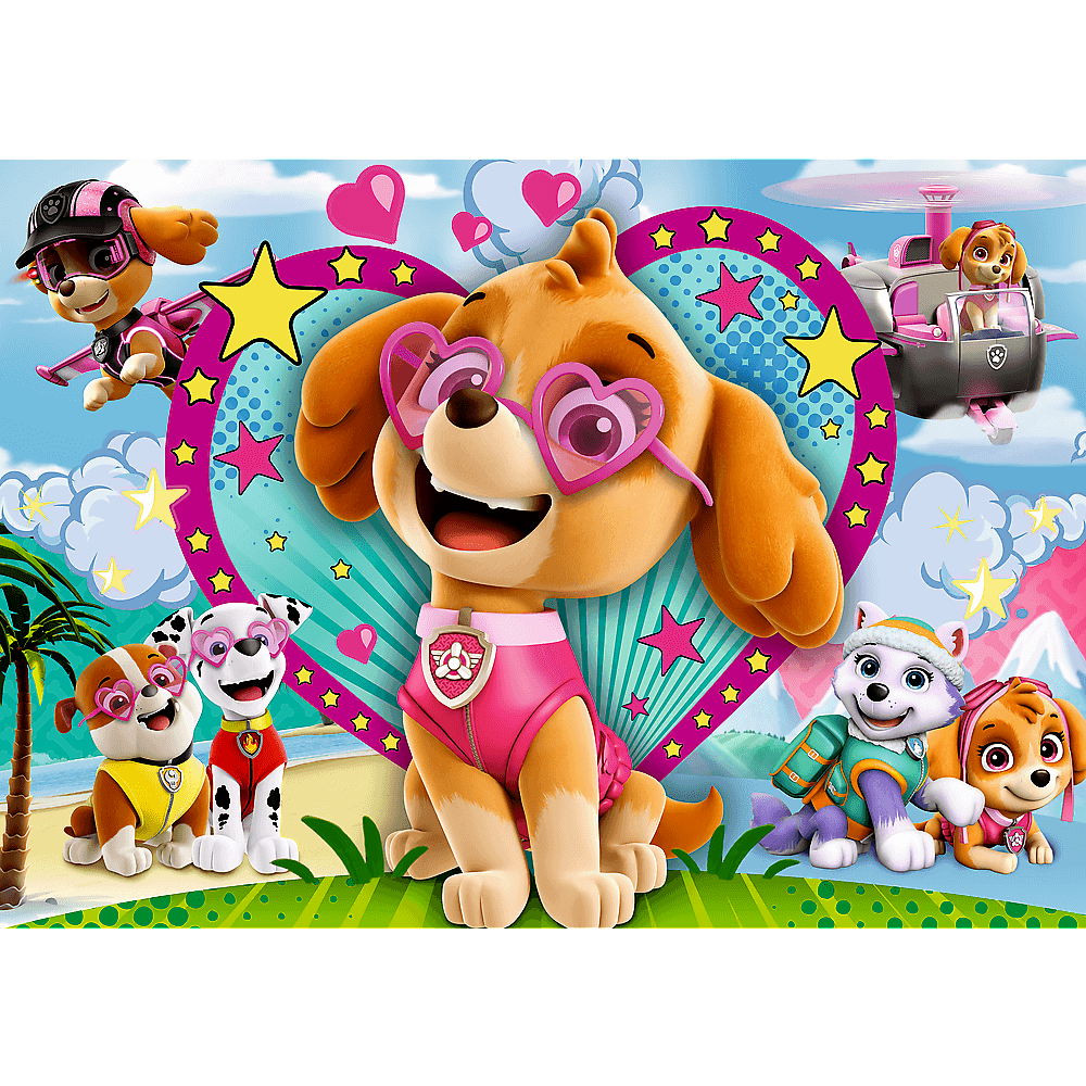 Ragyogjon be mindent a csillámpor! Rakd össze a Mancs őrjáratról készült képet a különleges, csillogós puzzle segítségével! A puzzle finom arany csillogással van borítva, ami mind a csomagolást, mind az egyes elemeket gyönyörűen csillogtatja, és csodálatos benyomást kelt. A puzzle kiváló minőségű természetes anyagokból készült, speciális fényvisszaverő papír felhasználásával, ami még kellemesebbé és könnyebbé teszi a kirakását.